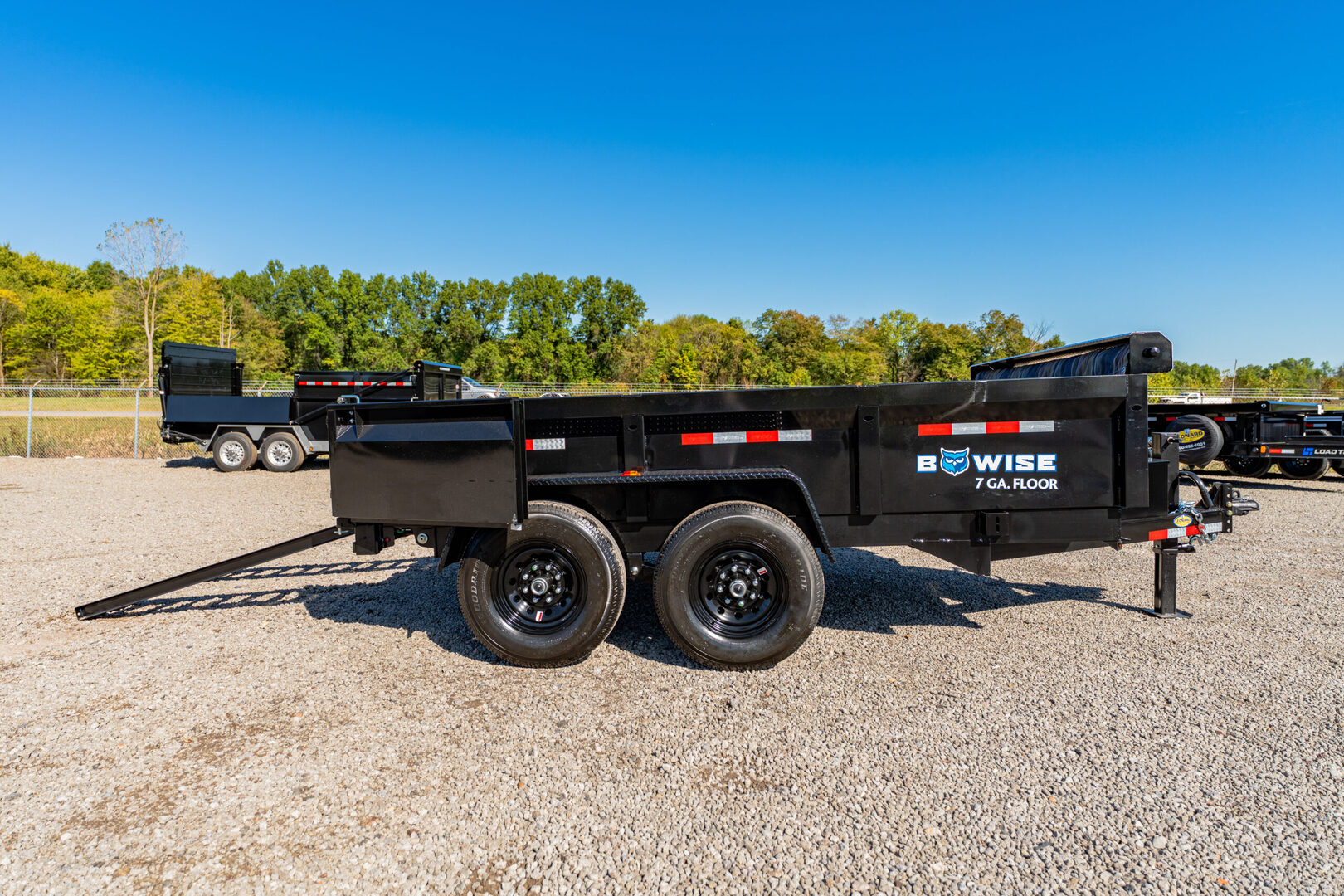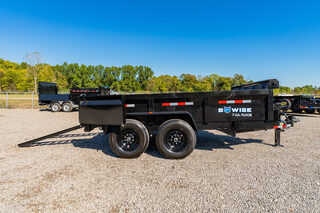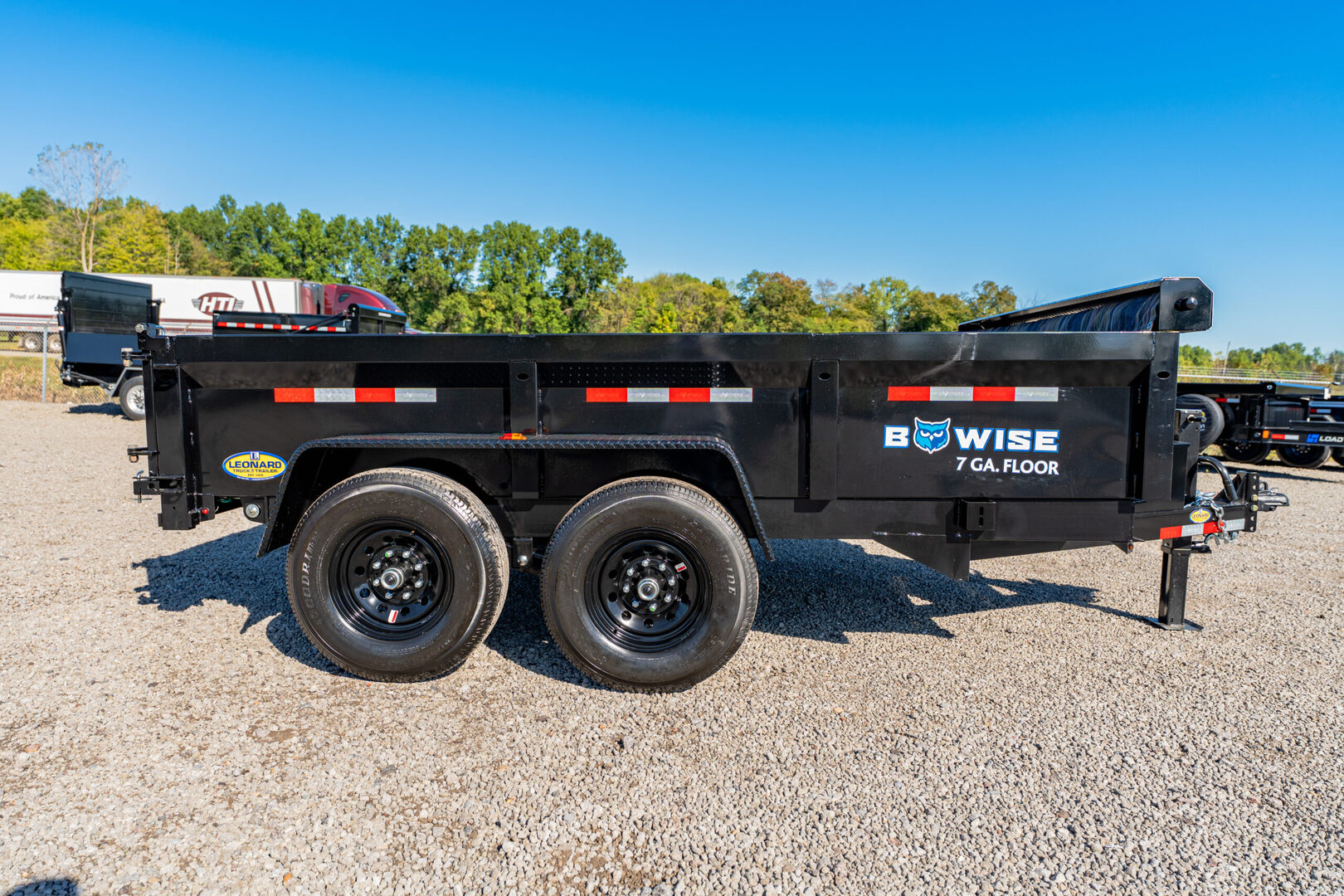 Stock# 45040 New 2026 Bwise DT712LP-LE-14 Dump Low Pro Dump Trailer The DT Channel Frame Low Profile Dump Trailers are the go-to low profile dump models for your homeowner and light duty commercial projects. With standard features to keep your dump trailer hauling projects moving easy and efficiently. Model:DT712LP-LE-14 Warranty: 2yr- Structural  DT14 – DT712LP-LE-14-A Dump Trailer (Low Profile) General Color: Black Model: DT712LP-LE-14-A (Dump Low Pro) Dimensions: 81.5” W x 12’ L GVWR: 14,000 lbs Frame & Structure Main Frame: 6” channel Bed Sides: Formed bed sides Floor: 7GA steel Coupler & Jack Coupler: 2-5/16” adjustable coupler Jack: 12K drop leg jack Axles & Suspension Axles: (2) 7,000 lb SS tandem axles, electric brakes Tires & Wheels Tires: ST235/80R16E radial, black modular wheels Hydraulics & Battery Cylinders: Twin telescopic cylinders Battery: Deep cycle battery Body & Gate Gate: Combo gate with ramps and D-rings Accessories Tarp Kit: 7’ tarp kit included We offer outstanding financing options, accept trades, and can arrange nationwide NO HASSLE delivery! Inquire today for more information! (888) 333-6613 **We believe these specifications to be accurate. Any discrepancies are unintentional. Please verify information with a sales associate prior to purchase.** Stock Number:45040