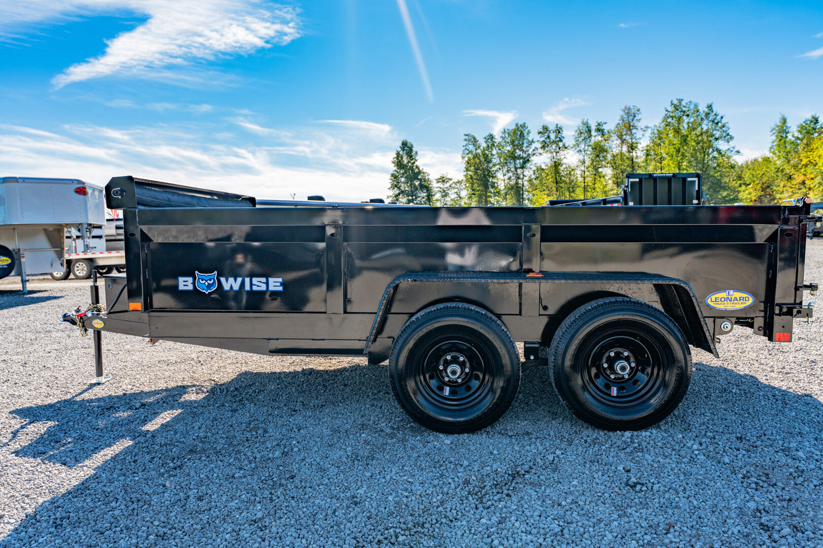 Stock# 45039 New 2026 Bwise DT612LP-LE-10-A Dump Low Pro Dump Trailer The DT Channel Frame Low Profile Dump Trailers are the go-to low profile dump models for your homeowner and light duty commercial projects. With standard features to keep your dump trailer hauling projects moving easy and efficiently. Model:DT612LP-LE-10-A Warranty: 2yr- Structural  DT10 – DT612LP-LE-10-A Dump Trailer (Low Profile) General Color: Black Model: DT612LP-LE-10-A (Dump Low Pro) Dimensions: 72” W x 12’ L GVWR: 9,990 lbs Frame & Structure Main Frame: 6” channel Bed Sides: Formed bed sides Coupler & Jack Coupler: 2-5/16” A-frame coupler Jack: 5,000 lb top wind jack Axles & Suspension Axles: (2) 6,000 lb tandem axles, electric brakes Tires & Wheels Tires: ST225/75R15D radial, black modular wheels Hydraulics & Battery Cylinder: 4” single-acting cylinder Battery: Deep cycle battery Body & Gate Gate: Combo gate with ramps and D-rings Accessories Tarp Kit: 6’ tarp kit included We offer outstanding financing options, accept trades, and can arrange nationwide NO HASSLE delivery! Inquire today for more information! (888) 333-6613 **We believe these specifications to be accurate. Any discrepancies are unintentional. Please verify information with a sales associate prior to purchase.** Stock Number:45039
