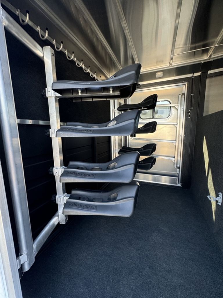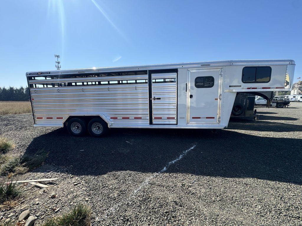 2025 Logan Coach Stockman Combo 24’ Stock Combo GnNo matter how tough the job, the Stockman Combo helps you get it done. This Stock trailer is available in both bumper-pull and gooseneck models. From cattle trailer to general stock trailer…the Stockman Combo gets the job done better.Features may include:STRUCTURAL7’ Tall, 7’ 3” Wide STD Stockman NoseGalvanized Structural Tubing In WallsOne-Piece Aluminum Skin Roof With Aluminum Cove And Roof Bows 2”x2” Cross Members On 16” CentersWHEELS, TIRES AND AXLESTorsion AxlesRadial Tires With Radial Spare TireSteel Wheels With Center CapE-Z Change Tire JackEXTERIOR Aluminum .100 Interlocking Extruded Sides of Stall Area (Attached With 3M VHB Bonding System)Solid Color Side SheetsVortex Rubber Coating Under Gooseneck Stainless Steel Front Wrap Rubber BumperE-Z Key System – One Key Fits Every Lock.100 Formed Aluminum FendeELECTRICALAC in Tack Room Porch Light on Each Side & Above Rear Entry GateDome Lights Without Remote Switch In Stall AreaL.E.D. Marker And Tail LightsTACK / DRESSING ROOMAngle Wall Tack RoomSingle-Wall Construction With Vortex Covered Wall TubesRemovable Carpet On FloorTack Door with WindowStationary (2) 4-Tier Saddle Rack 4-Place Blanket Bar2) Brush Trays on doorTwelve Aluminum Bridle HooksCarpet On Top Half Of Tack Wall (GN Includes Carpet On Drop Wall & DeckSTALL AREACorrugated Triple-Wall Construction 48” High With Vortex Rubber CoatingExtruded Aluminum Self-Draining Floor With Vortex Rubber Coating (Whiz Proof) Fully Matted Slatted Air Space (Plexiglass Ready) (Head And Tail Side)Single Stockman Rear Gate Solid Rear Center Gate With Slam Latch Center Gate Escape Door (Passenger Side) Tie Rings TACK ROOM 5’ Shortwall Dual Tack Entry DoorsAluminum Brush Box Aluminum Clothes Rod (2) 4-Tier Swing Out Saddle Racks (2) 4-Tier Blanket RacksAll Horse Trailers, will be ran through our service department AFTER they are sold. Pickup & Delivery time is based on the service department’s schedule at the time of purchase.*Please review all features with a salesperson. We try our best, but sometimes features and dimensions get mislisted. Thank you!*Akins Trailer Sales541-995-4884* Located in Harrisburg, Oregon* Financing Available* Trade-Ins Welcomewww.akinstrailersales.com