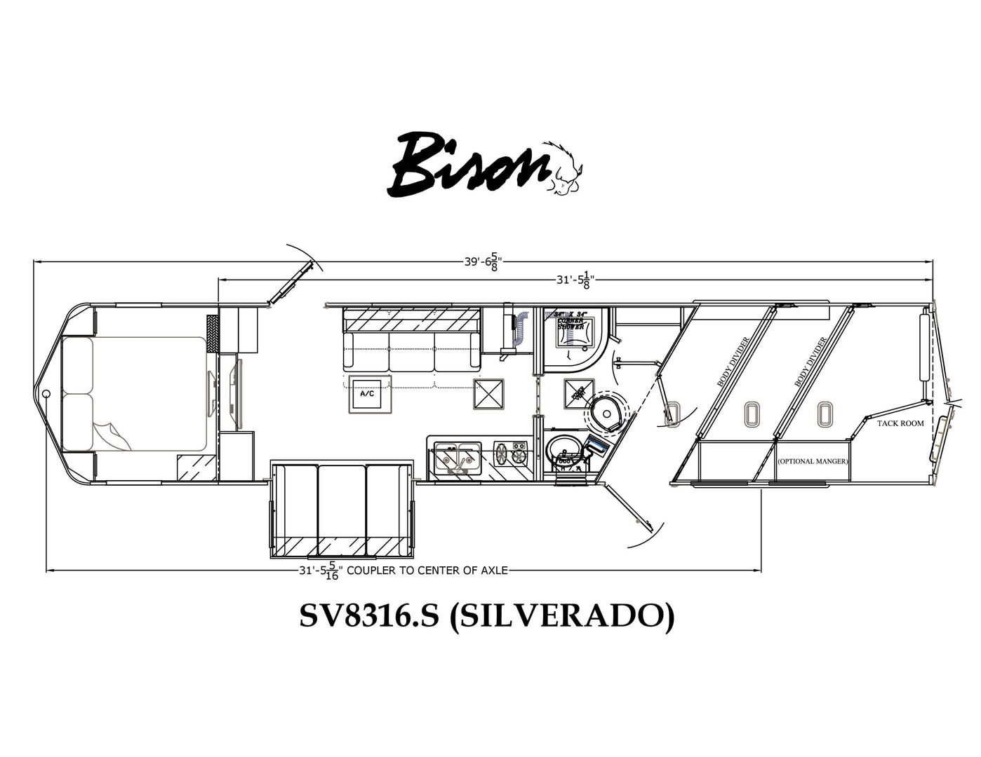 View Inventory: https://leonardtrailers.com/inventory/45114 Stock# 45114 New 2026 Bison SV8313BS Gooseneck Horse Trailer With Living Quarters Introducing the Silverado aluminum frame luxury coach! Embrace the perfect balance of elegance and sturdiness as you embark on unforgettable journeys. With the Silverado’s superior craftsmanship and thoughtful design, you’ll experience the pinnacle of comfort and convenience, all while benefiting from its lightweight advantage. Welcome endless possibilities with the Bison Silverado – The Ultimate Companion for Your Travel Dreams. Model:SV8313BS Warranty: 1yr- Exterior Paint (Peeling& Fading) 2yr- Components, Assembilies, Systems 6yr- Structrual As Long As You Own The Trailer-Pressure Treated Lumber Floor in Horse Area SV8313B-3 SLIDE Trailer Options Charcoal Exterior Extruded Aluminum Sides, Horse Area 7000# Axles (Standard) G-Tire / Aluminum Rim, ST235/85R16 8 Lug - Black Hydraulic Jack, Dual Legs Brite Nose Mangers - 3H / 2 Stall Stud Wall Lined & Insulated Horse Area Ceiling Step (@ Escape Door) HD Drop Down Windows Head/Butt Side Load Light Package (4 Total) Swing Out Saddle Rack (ILO Adj) - 8’ Wide Only Swing Out Blanket Bar Conversion Options Chestnut Brown Interior Cascade Grey Flooring Artist Maple Cabinetry Sofa & Dinette 15,000 BTU Air Conditioner, Ducted Water Heater Gas/Electric DSI - 6 Gallon (ILO Gas DSI) Stereo with Interior & Exterior Speakers Awning, Power (Per Model Spec) Recessed Cook Top with Range Hood 32” LCD TV with Locking Swing Arm Free-Standing Table Queen Mattress with Bedsheet   We offer outstanding financing options, accept trades, and can arrange nationwide NO HASSLE delivery! Inquire today for more information! (888) 333-6613 **We believe these specifications to be accurate. Any discrepancies are unintentional. Please verify information with a sales associate prior to purchase.** Stock Number:45114