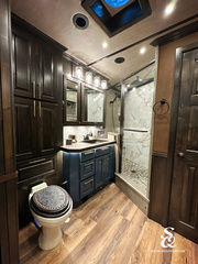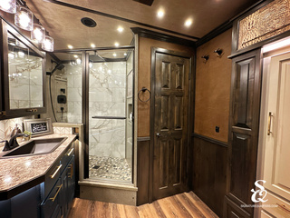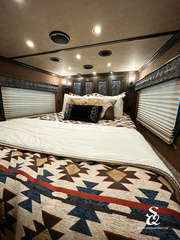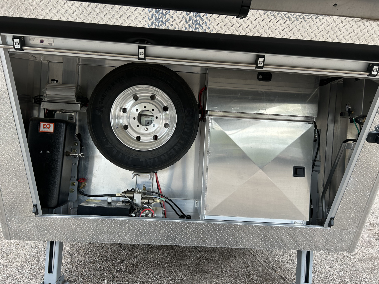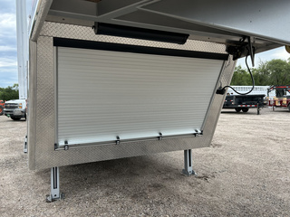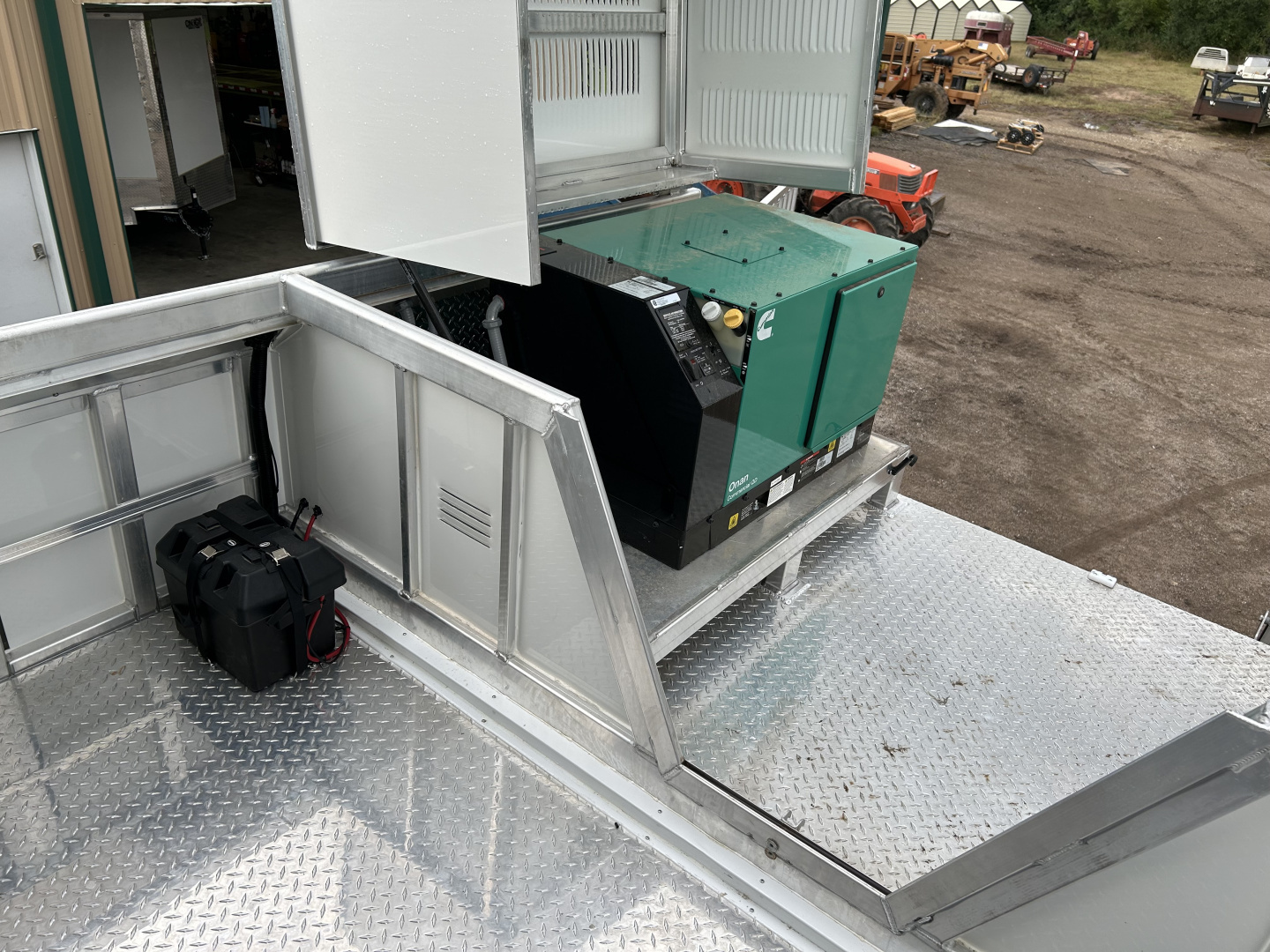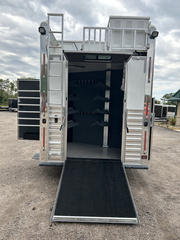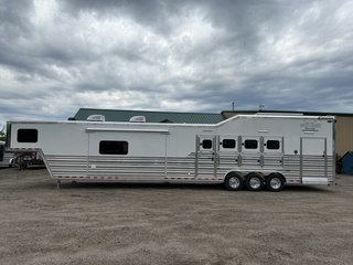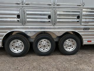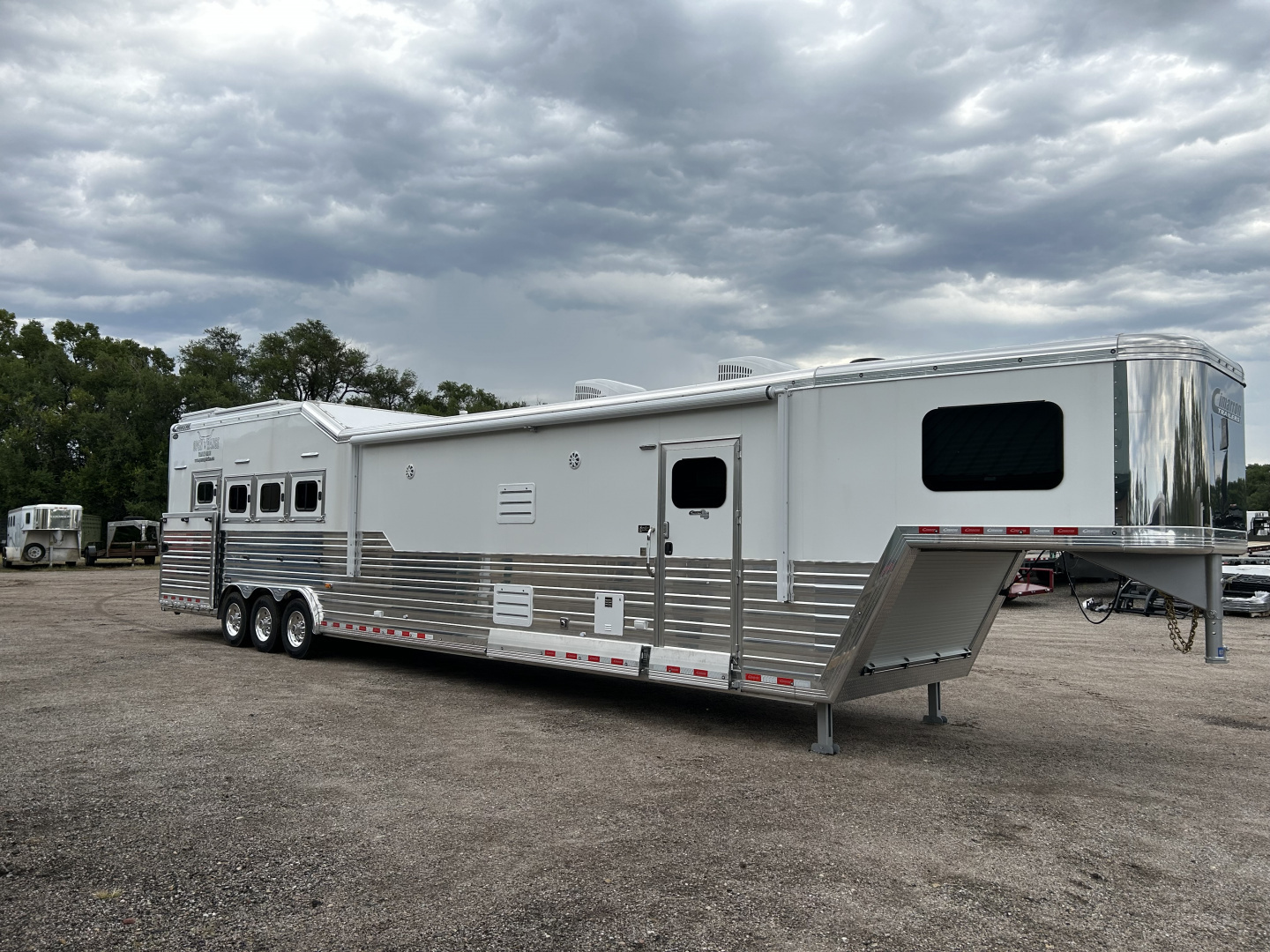 2025 CIMARRON ALUMINUM FOUR HORSE NORSTAR SLANT STALL SIDE LOAD INTEGRATED POD-LQ SHELL MODEL GN TRAILER 47”GN DROP WALL SUPER DUTY GN STRUCTURE 3 - 8K DEXTER AIRFLEX AXLES 8 BOLT HUBS ON ALCOA 17.5” RIMS ELECTRIC/HYDRAULIC DISC BRAKES FULL LENGTH ROCKER PANEL TP-RL CAPPING-STALL AREA ,REAR TACK ROOM 2 5/16 POSITIVE LOCK LOCK W/ ADJUSTABLE HT STEM POLISHED EXTRUSIONS ENCLOSED UNDER GN W/ ROLLUP DOOR TEAR DROP FENDERS 102 OAW INSULATED ROOF PANELS HOLDBACKS ON ALL DOORS AND GATES INTEGRATED POD W/ EZ ACCESS LID AND GATE AT REAR EZ ANGLE LADDER DUAL ELECTRIC/HYDRAULIC WITH 12 VOLT BATTERY AND COMPARTMENT CUSTOM LED LIGHTS, 25 ON TOP RAIL PER SIDE SOLID PARTITION SLANT WALL, FULL HEIGHT AND WIDTH FULL WIDTH REAR TACK 2 AC UNITS 3 SIDE WALL VENT FRAMES 2 HOLD TANK FRAMES DOUBLE LP BRACKETS TRIPLE RV BOX UNDER GN, WIRED HOT W/ ELECTRIC JACK HINGED LVRD COVER (8 KW CUMMINS DIESEL GEN) W/ PLATFORM ON INTGRTD POD DECK HWH HYDRAULIC SLID ROOM 35” DEEP, 126” WIDE 1-15X22 SLIDING WINDOW LH 1-15X22 FRAMELESS AWNING WINDOW 2-22X36 FRAMELESS AWNING EGRESS WINDOW REAR RAMP 60” TALL W/ FLIP UP DOOR ABOVE BUTTERFLY LATCH 32”ACCESS DOOR W/ FEED DOOR AND SBG HEAD SIDE FOLD DOWN FEED DOORS W/ SAFETY BARS BUTT SIDE FOLD DOWN FEED DOORS, NO SAFETY BARS SIDE RAMP OVER SIDE ACCESS DOOR 65”W X 57”T (SIDE LOAD W/24” REAR TACK 3 BAR TYPE HEAD GRILLS FOR MANGER 3 D RINGS 1 HEAD PADDING, 6 SIDE PADDING 1 HEAD BAR, 1 BUTT STRAP KICK MAT 48”HIGH ON LH AND FRONT WALLS, 54” HIGH ON RH WALL AND REAR WERM FLOORING DBL WALL & INSULATE @ KICK MATS W/.050 WHITE ABOVE 8 ADJUSTABLE SADDLE PADS, 1 POST SWING OUT, 1 POST REMOVABLE 1-6 POLE SWING OUT BLANKET POLE RECESSED PADDLE LATCH ON SIDE ACCESS DOOR ON #1 STALL SIDE ACCESS DOOR 39” ON RH SIDE OF STALL # 4FOR SIDE LOAD 4TH STALL IS 48” WIDE FOR SIDE LOAD REAR TACK RAMP IS 48” WIDE, CLOSES OVER DOOR WALLS AND DOORS OF FULL REAR TACK CARPETED 84” LONG FOLD UP STEP W/ 2 GAS SHOCKS, DIRECTLY BEHIND LQ DOOR STEP BOGIE WHEELS, SOLID STEEL SKID