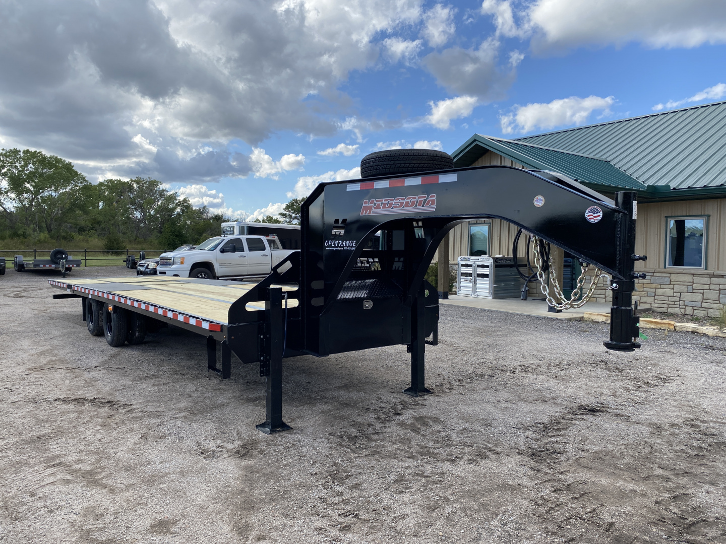 2026 Midsota 102”X 32’ Hydraulic Dovetail Gooseneck Trailer GVWR 23K 2- 10K Electric Brake Axles Hutch Style Suspension Dual Hydraulic Jacks On Gooseneck NOCO Genius 5 Amp Charger On Board 12 Additional Amber Penny Lights Spare Tire/ Mount Color, Black