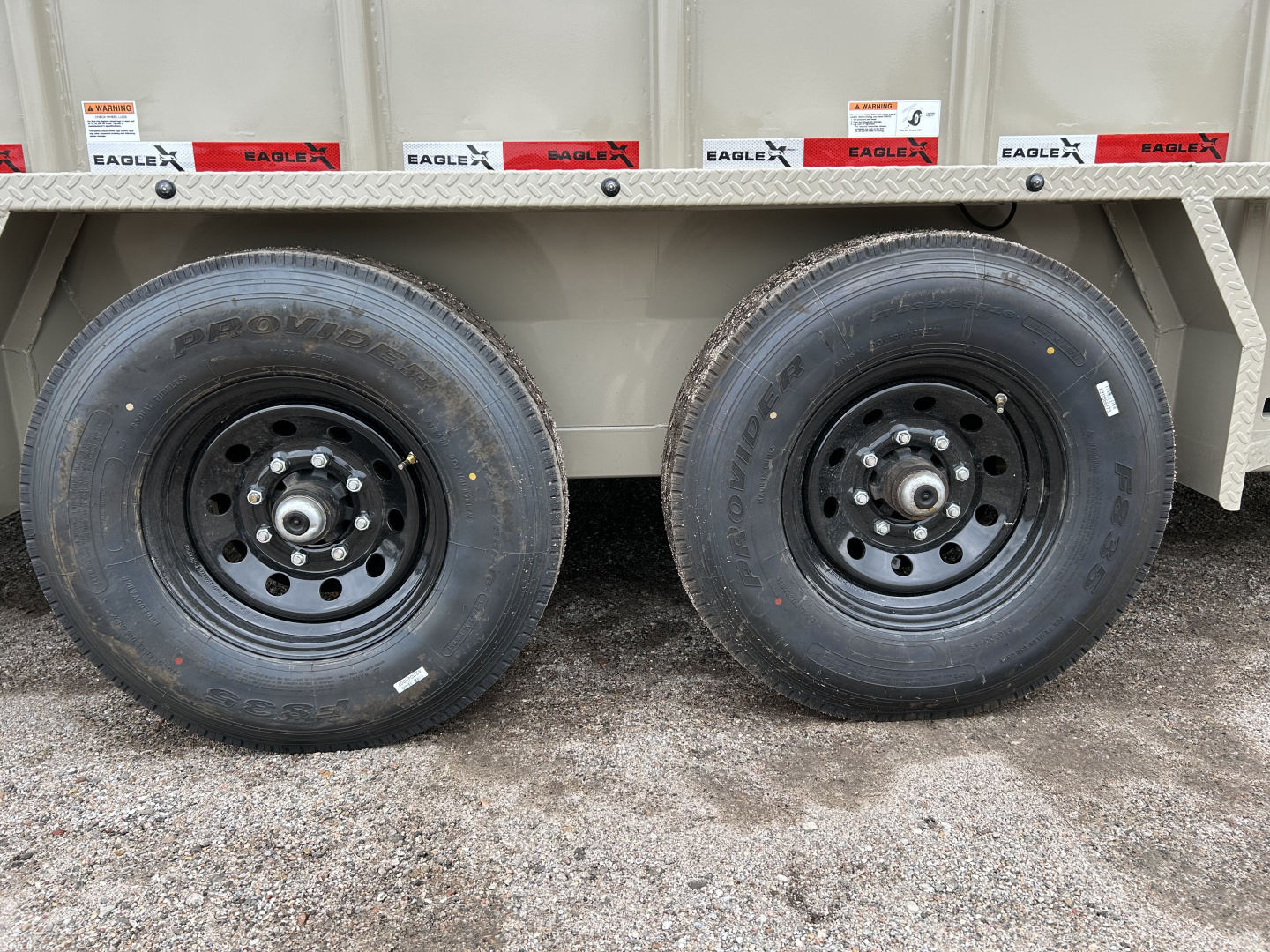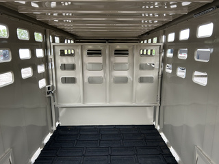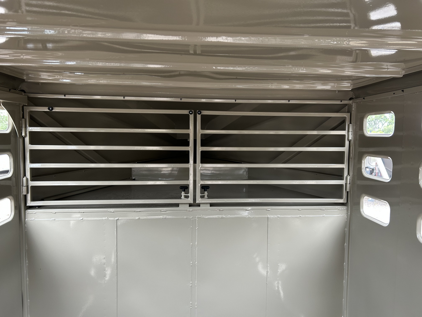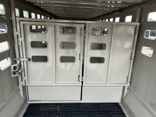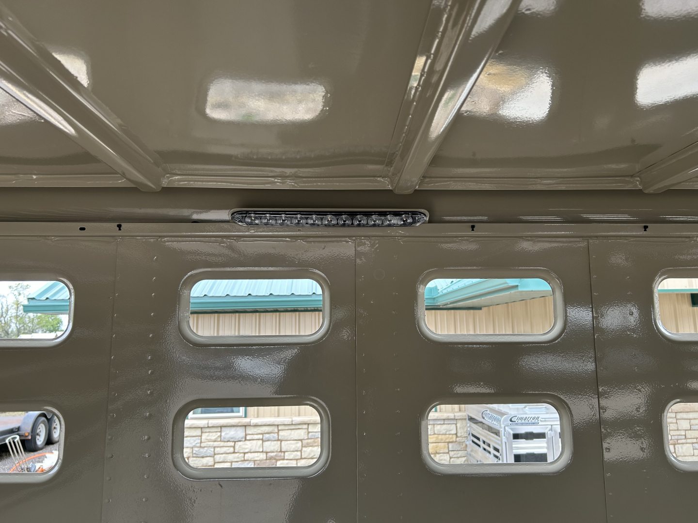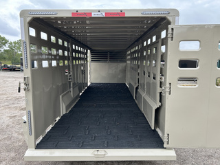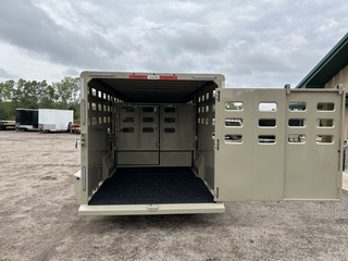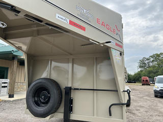 24’X7’ EAGLE X LIVESTOCK TRAILER 2 5/15’ COUPLER 2 - 7K TANDEM AXLES 14 PLY TIRES W/ 14 PLY SPARE CLEATED RUBBER FLOOR REAR SWING/SLIDER GATE 1 SORTING GATE CALF GATES IN NOSE OF TRAILER CLEANOUT GAPS BOTH SIDES 48” ESCAPE GATE DRIVERS SIDE BRUSH FENDERS 3 ROWS PUNCHED VENT SIDES INTERIOR WORK LIGHTS REAR LOAD LIGHTS FULL TOP ROOF DOT LIGHTING
