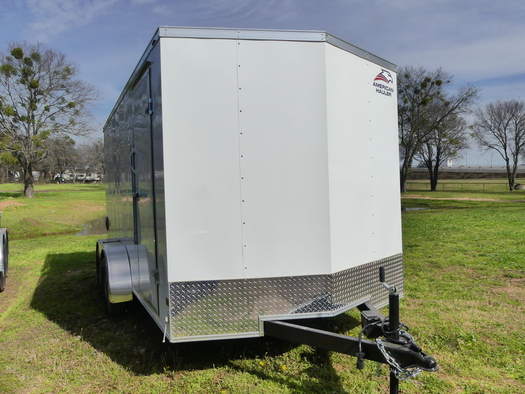 1-Piece Aluminum Roof16in Starbright Stoneguard3/4in PlexCore DeckingCrossmembers 16in On CenterSidewall Flow-Thru VentsStandard A-Frame TongueV-Nose12V Dome Light2,000lb Top Wind Tongue Jack6’6” Approximate Inside HeightSand PadST205/75R15C Radial 5B AH Silver Mod Steel WheelTube Roof Bows 24in On CenterThe Advertised Prices DO NOT Include: *Licensing* & TaxWe have over 200 trailers to choose from. Come in and see us at:6610 N I-35 Lacy Lakeview, TX 76705 (Exit 342B)Not in the great state of Texas? No Problem! We offer local and nation wide delivery.Store Hours:MON–FRI: 8:00 AM - 5:00 PMSATURDAY: 9:00 AM - 2:00 PMSUNDAY: ClosedRemember we handle all your Trailer Sales & Trailer Part Needs!!!Let us help you with servicing your trailer too!It is our pleasure to serve our community of Waco Texas and all of Central Texas