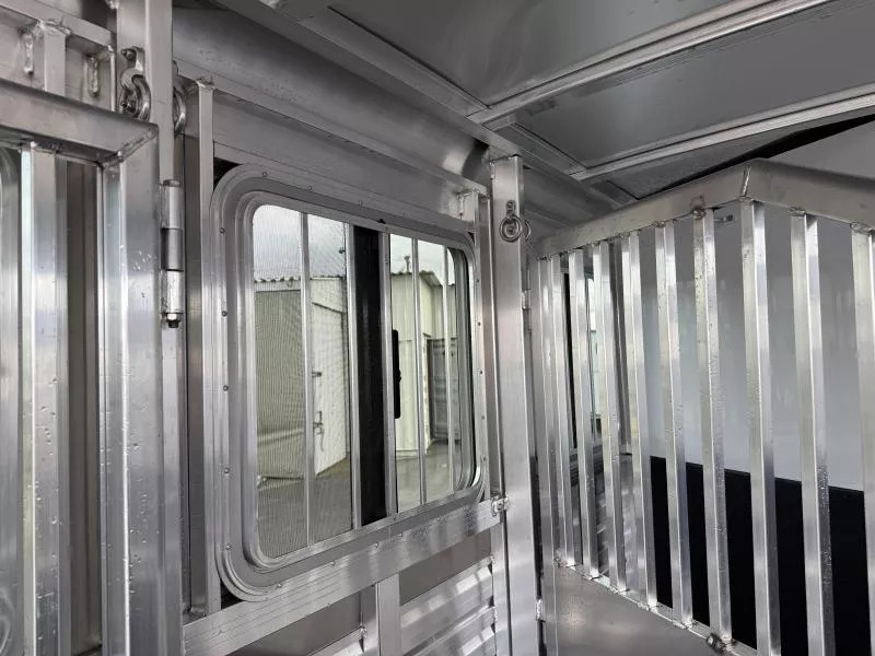 2026 Exiss 3 Horse Slantload Express CXF Bumper Pull Trailer. * All aluminum construction * Tandem 3,500# Torsion Axles * 15” Radial Tires with Aluminum Wheels * 4 wheel electric brakes * GREAT Extruded Aluminum Floor * One piece Aluminum Roof * Running Boards * Extruded Aluminum Slats Horse Area * White Aluminum Smooth Skin * Carpeted Front Dressing Room with: * 3 Tier Removable, Adjustable, Saddle Rack * Camper Door with Sliding Window * Halter Hooks, Brush Tray, Blanket Bar, Clothes Rod * LED Interior Light * Spare Tire on Aluminum Wheel * Horse Compartment Features: * Drop Down Feed Windows with Drop Bars Headside * Two Air Gaps Buttside with Tracking for Plexiglas * 2 Way Pop-up Roof Vents * Buttside Kickwall is Double Walled & Insulated up 48” * Slant Heavy Duty, Air Flow, Aluminum Dividers on Recessed Slam Latches * Stall Pads on Dividers * (2) Inside Tie Rings per Horse / (2) Outside Tie Rings per Horse * High Density Rubber Floor Mats * LED Interior Lighting * NO Rear Tack * Full Swing Rear Gate with Matching Air Gaps * Rubber Bumper * ATP Gravel Guard on Nose * LED Tail Lights and Running Lights * LED Rear Load Light Call D2 Trailer Sales 209-745-5480 or for more info www.d2trailersales.com