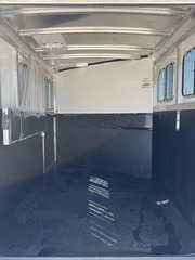 Horse Area - rubber floor mats, kick pads, padded air flo telescopic divider, roof vents, interior tie rings, interior LED lights, double rear doors, escape door, drop down windows with drop down face guards (head), bus windows (hip).