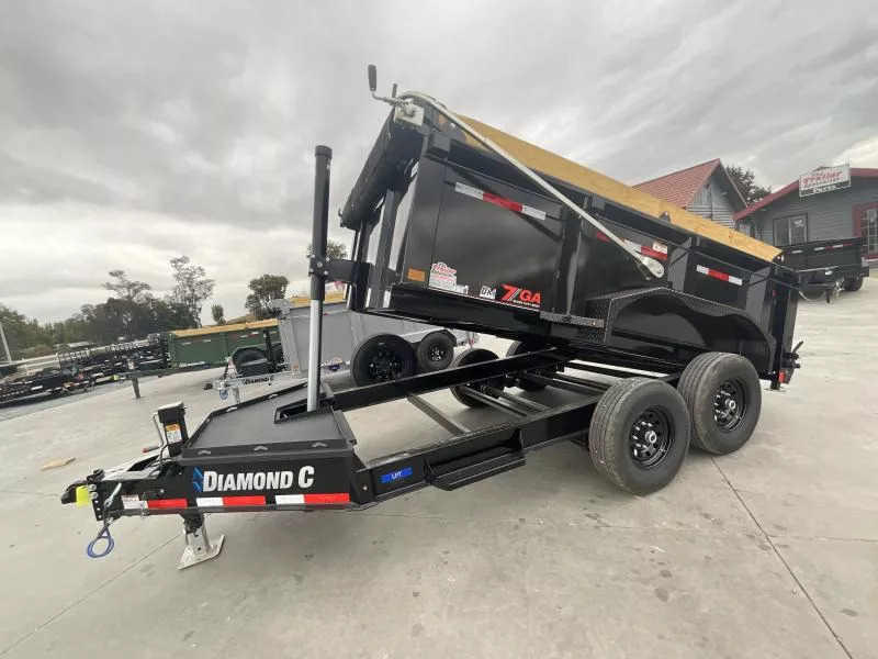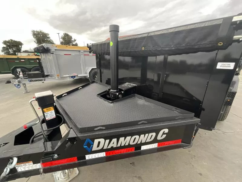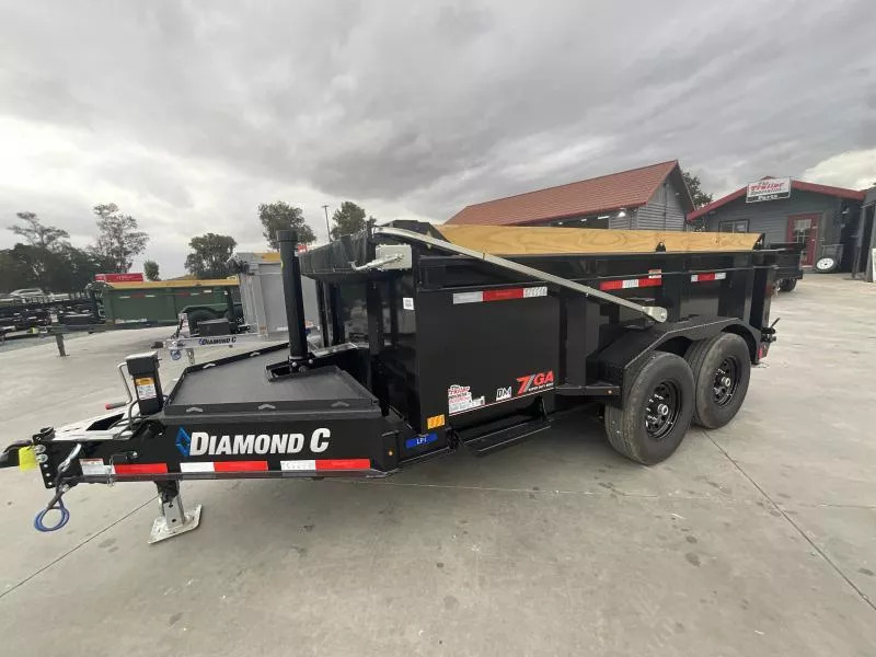 New 2026 Diamond C LPT207L Dump Trailer: 7’ x 12’ Low Profile, 14,900 GVW This 2026 Diamond C LPT207L12X82P3 is a heavy-duty, low-profile dump trailer designed for serious hauling. It features an innovative 3-stage telescoping cylinder that provides superior front-of-body dumping leverage, offering a popular and powerful alternative to traditional scissor-lift hoists. *** Empty weight: 5,240 lbs GVWR: 14,990 lbs Payload capacity: 9,660 lbs *** Upgraded & Premium Features This unit comes equipped with several robust upgrades for enhanced durability and convenience: * Heavy-Duty Body: 32” Tall, 10-gauge integral sides and floor for superior strength and capacity. * Super Heavy-Duty Fenders: 3/16” thick diamond plate fenders built to last. * Tarp System: Includes a 20’ heavy-duty black mesh tarp with a long-arm tarp system for easy material coverage. * Board Brackets: Board brackets with boards and a raised front allow for increased side height. * Tires & Wheels: ST235/80R16 Radial 14-ply tires on 8-hole black wheels (includes spare tire and curb-side mount). *** Standard Construction & Components Built on an 8” x 15# I-Beam frame with 16” center crossmembers, this trailer is engineered for heavy use: * Hydraulics: Power up, gravity down hydraulic system. * Rear Access: 3-Way Dump Gate (standard) and HD 72” rear slide-in ramps (3x2 rect tube). * Jacks: 15K 2-Speed Drop Leg Jack and a pair of Drop-Leg Stabilizer Jacks. * Coupler: 2-5/16”, 21K DEMCO EZ-LATCH (adjustable channel). * Tie-Downs: (4) total standard 5/8” D-Rings. * Lighting: All LED lights. * Finish: ONYX BLACK Paint. *Please confirm all specifications and features with a sales representative to ensure complete accuracy.*