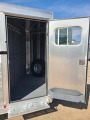 Platinum Coach 4 Horse Bumper Pull with Mangers 8’ wide x 7’ tall x 18’ long Extended tongue, pull easier behind motor home!! 3 mangers with escape door at head 7,000# axles Aluminum wheels Drop down window on escape door Drop down window bars Drop down window on passenger side Carpeted and sealed rear tack, keep your tack CLEAN!! Flow through dividers on swinging portion of divider LED load lights on each side, one at back 6’ hay pod and 3’ landing with ladder Bridle hooks in rear tack and carpeted bulkhead wall in dressing room Fold up steps at REAR TACK, dressing room door and escape door