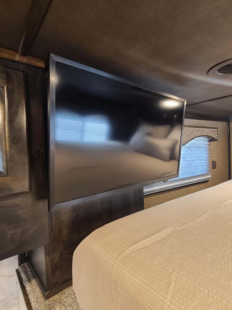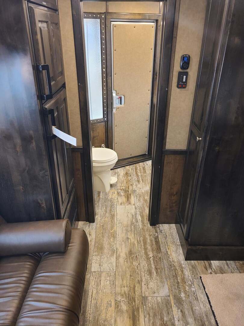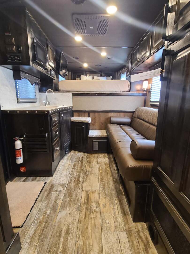 Proline XP by Outlaw Conversions features: Onan 4.0 MicroQuiet generator Ebony Alder Brio wood with Custom Cabinetry 15,000 BTU A/C with strip 72” sofa sleeper 6.0 propane / electric refrigerator 20,000 BTU propane furnace 6 gallon 12VDC / 120VAC water heater 60 gallon fresh water tank 32” LED Smart TV on arm AM/FM/CD/DVD player with 2 exterior speakers Power awning with cover Single leg hydraulic jack Double 30# propane bottles Microwave over kitchen sink 32” radius shower with power vent above Large vanity next to shower Porcelain toilet in front of large closet Platinum Coach features: 8 x 26 x 7’6” tall 7200# axles, 14 ply tires on aluminum wheels Blocked axles, and raised neck for great ground clearance Full width rear tack, tons of tack accessories Stud divider on first stall Break divider on load divider Two mangers, two access doors Escape door on first horse Drop down windows on head & hip 6’ enclosed hay pod for extra storage Onan 4.0 generator mounted in gen box behind pod 5 lights on top rail, all round LED 3 LED load lights