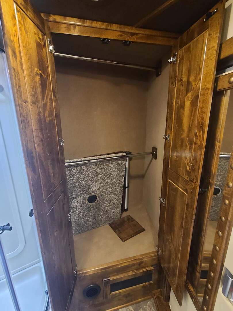The Conversion: In the world of living quarter horse trailers, the name that means outstanding quality is Outlaw Conversions. Since 1996, Outlaw Conversions has produced the premier custom interior in the industry. Their expertise and attention to detail is evident in every square inch. Outlaw Conversions also places great emphasis on after-the-sale customer service. A customer who invests in an Outlaw interior is provided exceptional service. Their number one goal is customer satisfaction.
