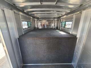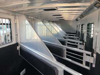 2004 Adam 6 Horse with 4’ Dressing Room 7 wide x 28’ long x 7 tall Drop down windows on head side, bus windows on rump wall Three drop down windows do not have glass sliding portion Collspsible rear tack, saddle rack can move front to back Escape door on first stall with drop down window 4’ dressing room with location for saddle rack Minor hail damage on roof This trailer has been checked out, and is ready for the road!