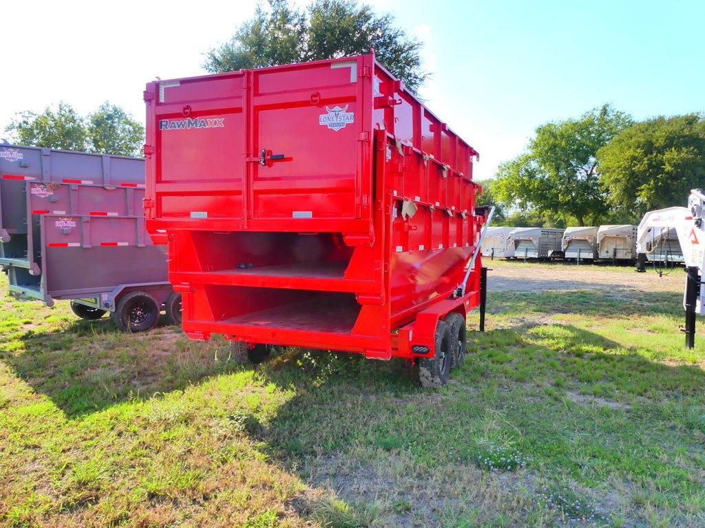 2026 RawMaxx Trailers | 7x16| GN Roll Off Dump | 2-7k Axle | Red| 3 Bin