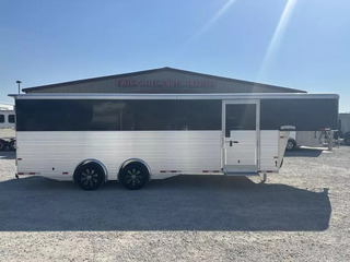 NEW 2026 Sundowner 24’ Workhorse Series Enclosed Cargo Gooseneck 24’L x 8’W x 7’T All Aluminum Cargo Area - Luggage retainer bar in nose, interlocking welded aluminum floor, 4 recessed floor tie downs, 2 interior LED load lights, double rear doors, (2) 18”W x 5’7” ramps, ramp storage on rear doors. Other Features - center leg landing gear jack, LED clearance light, black aluminum skin, spread axle, black aluminum wheels, spare tire with matching wheel, 48” aluminum wave panel, turn signals on fenders, 24” side entrance door with fold down step. Trailer comes with full factory warranty! Financing options with rates as low as 6.49% WAC - Nationwide delivery available Call our sales department at 940-365-9919 After hours calls/texts 612-381-6782