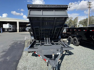 2026 SRTC 7’ x 10’ Tandem Axle Bumper Pull Hydraulic Dump Trailer 10K * 9990# GVWR * Tandem 6K Brake Axles * ST225/75R15 6 Lug Wheels * Steel Tool Box on Tongue has Pump, Motor, and Battery plus corded Remote * Battery Charger * 26” Tall Sides * Tarp Pkg * Tarp Cover * 2”x2” Heavy Duty Top Rail w/ Stake Pockets * Rugby Hydraulic Scissor Hoist * Double Rear Doors * Spreader Gate * 7’ Long Slide Out Rear Ramps * (4) Weld On D-Rings Inside * Spare Mount * Heavy Duty Fenders * Side Steps * Rear Load Stabilizer Legs * LED Lights * 2K Jack * 2 5/16” Adjustable Coupler * Grey Call D2 Trailer Sales 209-745-5480 or for more info www.d2trailersales.com