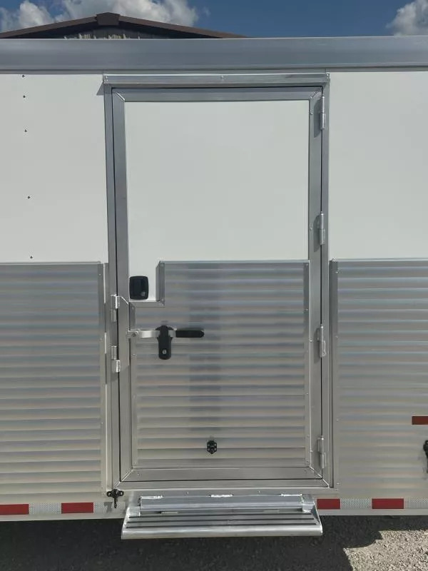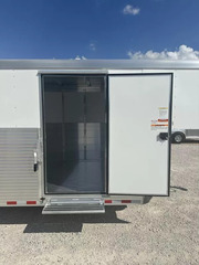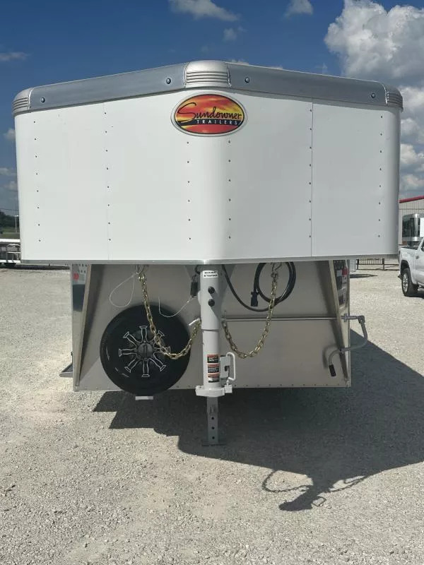 NEW 2026 Sundowner 28’ Workhorse Series Enclosed Cargo Gooseneck 28’L x 8’W x 7’T All Aluminum Cargo Area - interlocking welded aluminum floor, 4 recessed floor tie downs, 2 interior LED load lights, cable assisted rear ramp. Other Features - center leg landing gear jack, LED clearance lights, white aluminum skin, spread axle, black aluminum wheels, spare tire with matching wheel, 48” aluminum wave panel, turn signals on fenders, 36” side entrance door with fold down step, one piece aluminum roof. Trailer comes with full factory warranty! Financing options with rates as low as 6.49% WAC - Nationwide delivery available Call our sales department at 940-365-9919 After hours calls/texts 612-381-6782