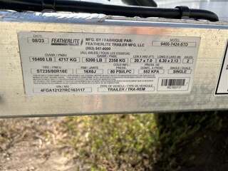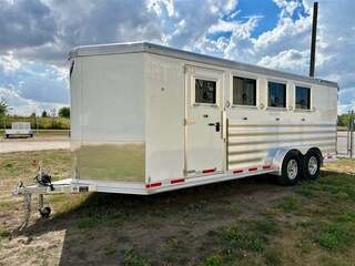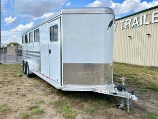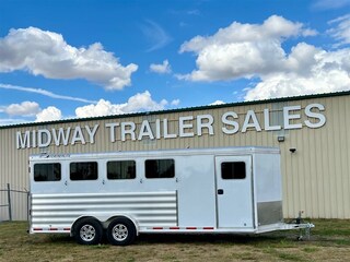 Trailer Details: * All Aluminum Construction * 7’ Width * 7’ 2” Interior Height * 21’ Floor Length * 26’ Overall Length * (2) 5200# Axles & Electric Brakes * ST235/80R16 LR-E Tires * Complete Spare Horse Area Details: * Slant Load * Floor mats * 60/40 Rear Doors * Rear Collapsible Tack * Drop Down Feed Doors Front Dress: * 2’ SW Front Dress * Bridle Hooks * Brush Box * Pop Out Blanket Bars * Stackable Saddle Rack GVWR 10,400# Sale Price Does Not Include Tax, Registration Fee, License, Freight, & Document Fee. We do not take out of State Checks. No guarantee as to the accuracy of this document is expressed or implied.