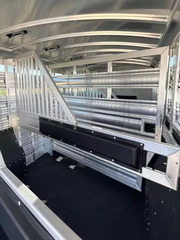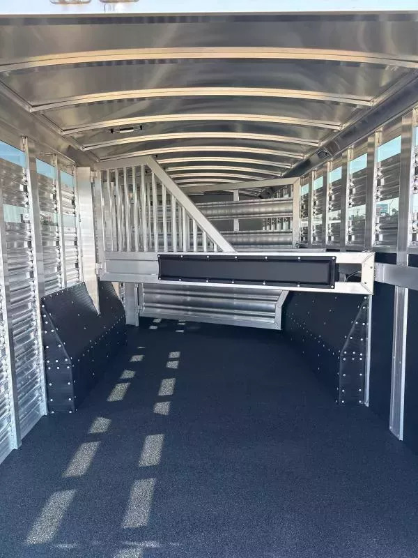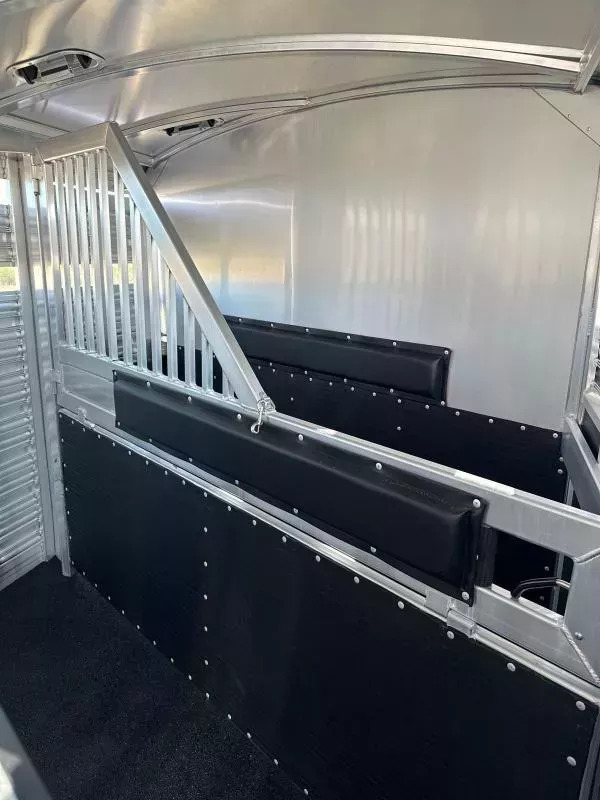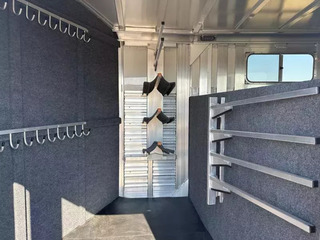 Financing and Nationwide Delivery Available 8 ft. Wide - Plenty of room for big horses and tack 4 ft. Wide tack room door for access with saddles swung out Hassle free, simple, swing out saddle rack WERM flooring Removable dividers Full divider gate Flow through dividers Roof vents Stud divider/baby panel, removable Plexiglass Hay rack Aluminum wheels