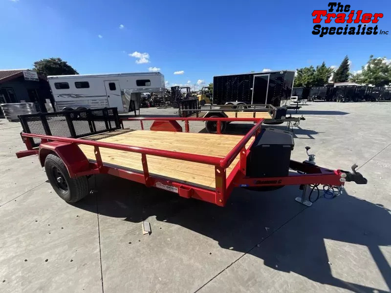 NEW 2026 Diamond C PSA Premium Single Axle Utility Trailer: 12’ of Versatile Power! Meet the 2026 Diamond C PSA106L, the premium single-axle utility trailer engineered for unmatched durability and versatility. This trailer is your ultimate solution for hauling everything from ATVs and landscaping equipment to tools and material, delivering exceptional performance and reliability every time. *** Quick Specs & Hauling Capability | Specification | Detail | | ------------- | ------ | | Size | 12 feet long x 83 inches wide (Nearly 7’ wide) | | GVWR (Gross Vehicle Weight) | 6,000 lbs | | Empty Weight | 1,380 lbs | | Payload Capacity | 4,620 lbs (Massive capacity for a single axle!) | | Color | Eye-catching Scarlet Red | Export to Sheets *** Key Upgraded & Standard Features This model is loaded with high-quality features that set it apart from the competition: * Premium Axle: Heavy-duty 6,000 lb Straight Axle with Electric Brakes for superior stopping power and safety. * High-End Tires: Upgraded to durable ST225/75R15 Radial tires on black 6-hole wheels (includes a matching spare tire). * Best-in-Class Coupler: Features the 2” - 10K Demco EZ-LATCH coupler on an adjustable channel for effortless, secure hook-ups. * Secure Storage: Integrated 10” x 13” Lockable Steel Tongue Box to safely store straps, chains, and tools. * Frame & Build: * Robust 4” Channel Frame and Tongue. * 2” Treated Wood Floor for long-lasting performance. * Pipe Top Rail (2-3/8”) with expanded metal sides for secure cargo containment. * Loading: 48” Bi-Fold Ramp Gate (2” square tube) makes loading easy while folding down flat to reduce drag when towing empty. * Convenience: Includes a Cable Winch Spare Tire Mount (retractable, under frame), standard stake pockets, and All-LED Lighting. *Ready to haul more than any standard utility trailer-get the Diamond C advantage today!*