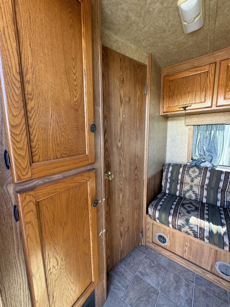 2007 Exiss 7408 Sport 4 Horse Living Quarters Comfortable living quarters plus horse-friendly features are blended perfectly into the Exiss 8’ shortwall model. Features May Include: STRUCTURAL 7’ Tall 7’ Wide 8’ Living Quarters Floor length Overall Length All Aluminum Framing WHEELS, TIRES and AXLES 2 Axles Tires and Spare Tire EXTERIOR Dual Battery Single-Leg Power Jack (2) Propane TanksSTALL AREA Double Rear Doors w/Window Aluminum Floors Fully Matted Interior and Exterior Tie Rings (one per stall) Two-way pop up vents (one per horse) Aluminum Dividers with Slam Latches Lower Stud Divider (1st Stall) Walk Through Door from LQ to Horse AreaTACK ROOM Rear Tack Brush Tray Bridle Hooks 3 Tier Saddle Rack APPLIANCE 3-Cubic Ft. Refrigerator Microwave 2-Burner Cooktop Air Conditioner Unit FurnaceINTERIOR DECOR Sofa Lino –Flooring Window Shades Step to Bed Area PLUMBING Water Heater Fresh Water Tank Grey and Black Water Tank ELECTRICAL Light Fixtures BATHROOM Toilet Shower with Curtain CABINETSOverhead Cabinets Front Gooseneck Cabinet Please Note, this trailer is on consignment. Being Sold AS IS. This trailer has been ran through our service department. Pickup & Delivery time is based on the service department’s schedule at the time of purchase.*Please review all features with a salesperson. We try our best, but sometimes features and dimensions get mislisted. Thank you!*Akins Trailer Sales541-995-4884* Located in Harrisburg, Oregon* Financing Available* Trade-Ins Considered www.akinstrailersales.com