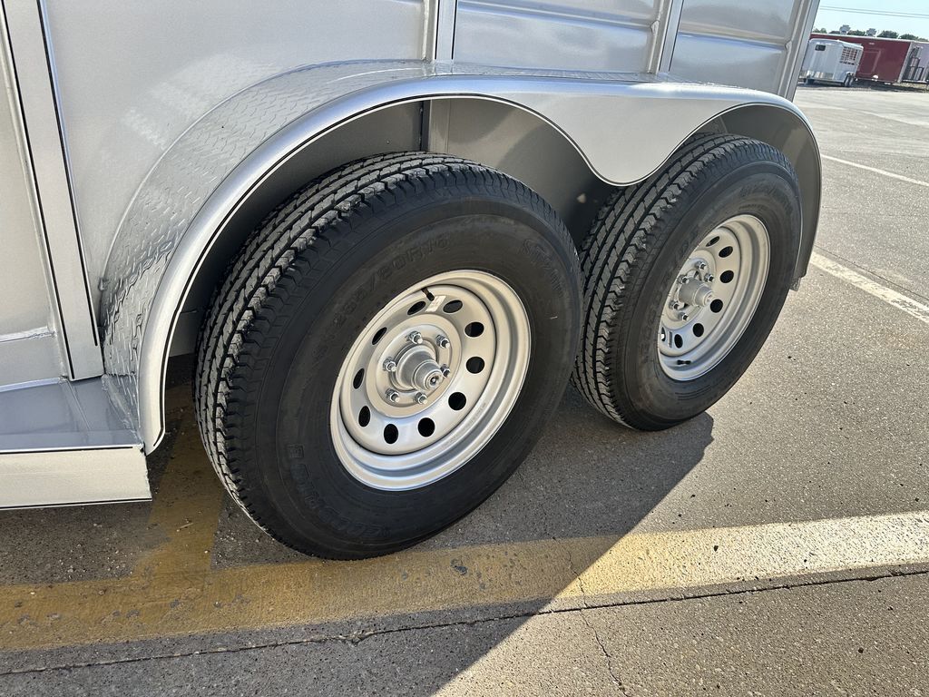 12’ (Length) x 6’ (Width) x 6’ 6 in. (Height) 2 x 3,500 EZ Lube Torsion Axles Brakes on Rear Axle ST235 / 80 R 16 in. (Load Range E) SUPER TIRES Max Load Tires 3,520 lb. Each (Total 14,080 lb.) Double Weight Rating On Tires Over Axles 6 Lug Grey Mod Wheels Front Escape Door 2 in. Bulldog Style Coupler 2K Top Wind Jack w/ Caster Wheel Teardrop Fenders w/ Front and Rear Steps ATP Fender Rock Guard 12 in. ATP Front Rock Guard Spare Tire Mount 36 in. Solid Lower Body Front Window Steel Rear Bumper 7 Way RV Plug Treated Pine Wood Floors Empty Weight 1,920 lb. G.V.W.R. 7,000 lb. Carrying Capacity 5,080 lb.