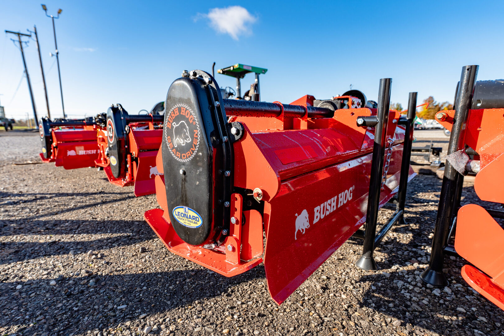 View Inventory: https://leonardtrailers.com/inventory/45196 New Bush Hog rotary tiller that has rugged construction, heavy duty gearboxes, direct gear drive, replaceable skids, shielded drivelines, tilling width 59’’,70.5’’,82.5’’. Tractor pto hp requirements 25-65, rotor speed 211 rpm/540 pto, driveline protection is a slip clutch, 1 year machine limited warranty, 5 year limited warranty on input and side gearboxes, power to rotor transmission gear drive, single speed, -a gear drive with oil both inside gearbox is more durable than a chain drive that will wear and could break. Call for more details!! **We believe that these specifications to be accurate. Any discrepancies are unintentional. Please verify information with a sales associate prior to purchase.** Stock Number:45196
