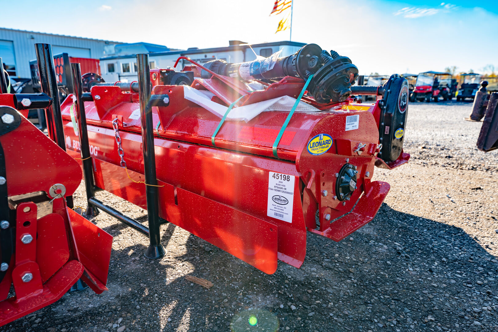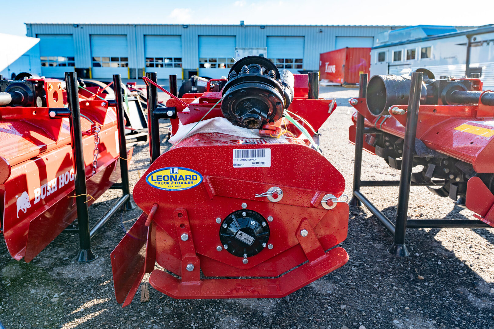 View Inventory: https://leonardtrailers.com/inventory/45198 Introducing the Bush Hog Brand RT84GR-1R Attachment: Unleash Efficiency and Versatility in Your Tilling Operations! The Bush Hog Brand RT84GR-1R Attachment is a powerful and reliable gear-driven rotary tiller designed to tackle even the toughest tilling tasks with ease. With its impressive working width of 82.5 inches and a total width of 90 inches, this attachment allows you to cover a substantial area efficiently, reducing the time and effort required for tilling. Equipped with a robust gear-driven drivetrain, the RT84GR-1R Attachment ensures reliable and consistent performance. It offers both standard and reverse rotation options, allowing you to adapt to different soil conditions and achieve optimal tilling results. The gear-driven design provides excellent torque and power transfer, enabling the attachment to handle demanding and compacted soils effectively. The RT84GR-1R Attachment features an ASAE CAT 1 and 2 hitch, compatible with both standard and quick hitch systems. This ensures a secure and stable connection between the attachment and your tractor, providing stability and maneuverability during tilling operations. The versatile hitch compatibility allows you to use the attachment with a range of tractors, adding to its overall versatility. With ten flanges and six blades per flange, the RT84GR-1R Attachment delivers exceptional tilling performance. The 17-inch rotor/blade rotation diameter ensures a wide coverage area, while the 3-inch rotor shaft diameter provides durability and strength to withstand the rigors of tilling. The attachment operates at a rotor speed of 211 RPM, effectively breaking up soil and preparing it for planting or other landscaping tasks. Weighing in at 817 pounds, the RT84GR-1R Attachment offers stability and optimal ground penetration during tilling operations. The PTO driveline with slip clutch is built to ASAE CAT 4 specifications, ensuring reliable power transmission and protection against potential overloads. This guarantees smooth and uninterrupted operation, even in challenging conditions, enhancing both performance and durability. The RT84GR-1R Attachment provides a generous tilling depth of 7 1/2 inches, allowing you to cultivate the soil to the desired depth for optimal seedbed preparation and weed control. It is compatible with tractors ranging from 45 to 65 horsepower (PTO), offering versatility and suitability for a wide range of agricultural applications. In conclusion, the Bush Hog Brand RT84GR-1R Attachment is a powerful and versatile tool for all your tilling needs. With its wide working width, robust gear-driven drivetrain, and impressive tilling depth, this attachment is designed to deliver exceptional performance and productivity. Invest in the RT84GR-1R Attachment and experience the efficiency and reliability that Bush Hog is known for. Take your tilling operations to the next level with the Bush Hog Brand RT84GR-1R Attachment! **We believe that these specifications to be accurate. Any discrepancies are unintentional. Please verify information with a sales associate prior to purchase.** Stock Number:45198