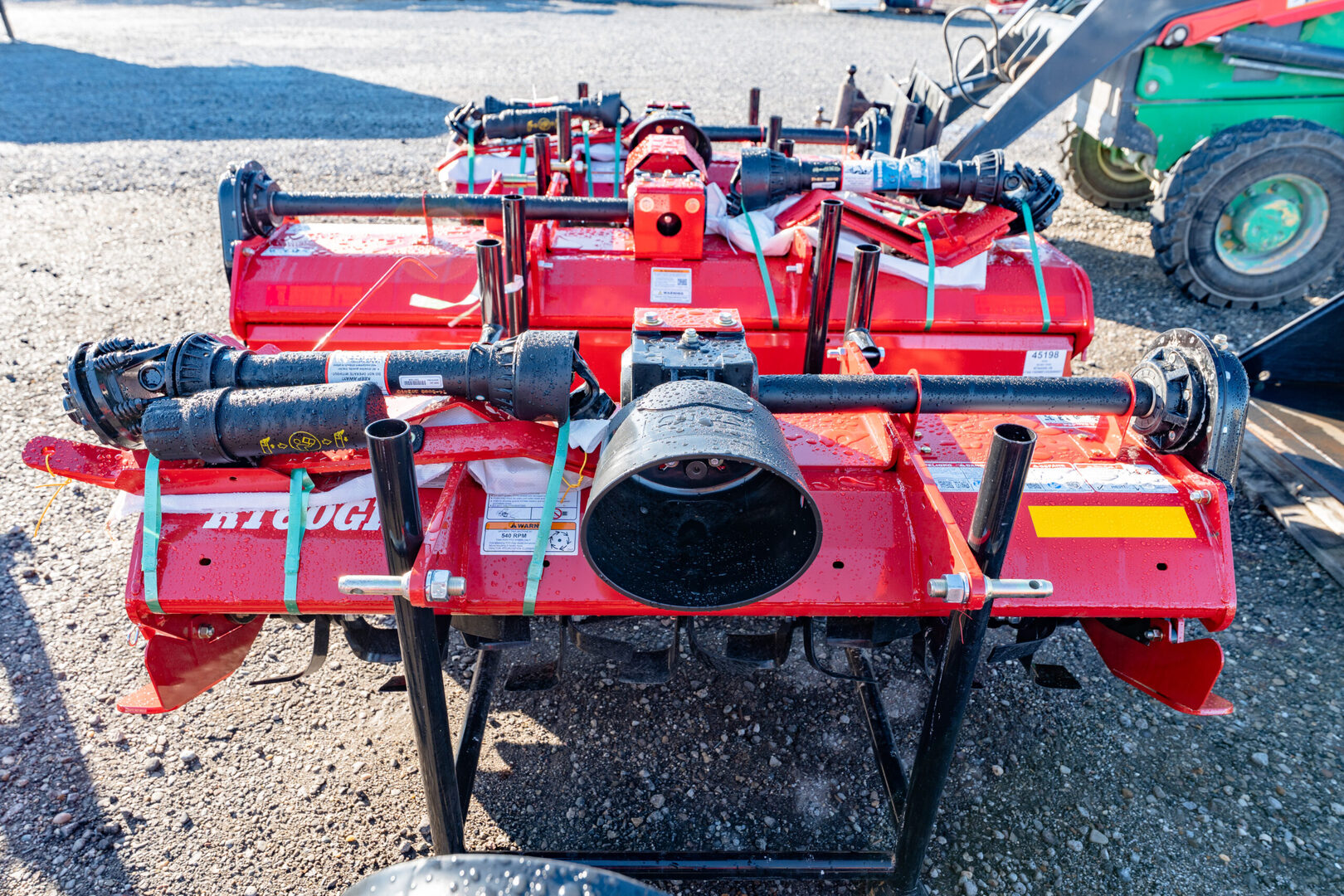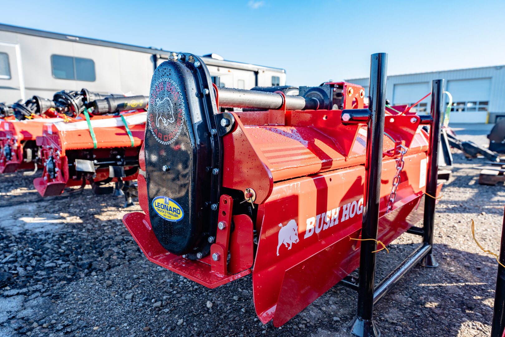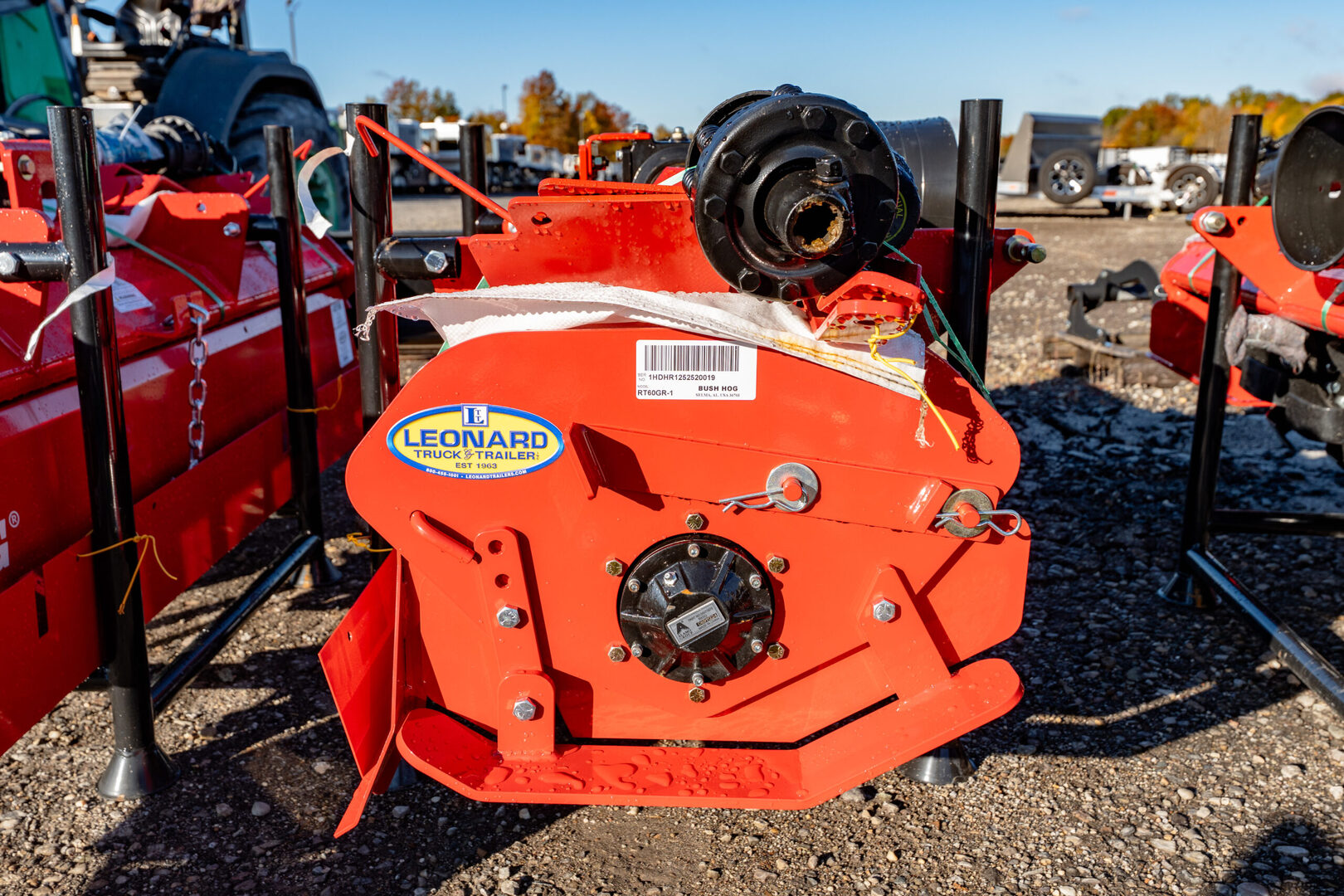 View Inventory: https://leonardtrailers.com/inventory/45192 Introducing the Bush Hog Brand RT60GR-1R Attachment: Unleash Efficient and Precise Tilling Performance! The RT60GR-1R Attachment by Bush Hog is a powerful and reliable rotary tiller designed to transform your tilling operations. With its versatile features and robust construction, this attachment is built to tackle a range of tilling tasks with ease. Equipped with a gear drivetrain, the RT60GR-1R ensures efficient power transmission, allowing you to achieve optimal tilling results. The standard/reverse rotation feature provides versatility, enabling you to adapt to different soil conditions and achieve thorough and consistent tillage. The hitch compatibility of the RT60GR-1R is another standout feature. It comes with an ASAE CAT 1 hitch as standard, making it ready for use with both standard and quick hitches. This versatility allows you to easily connect and detach the attachment, saving you valuable time and effort. With a working width of 59 inches, the RT60GR-1R enables you to cover a significant area in a single pass, increasing your productivity and reducing tilling time. The seven flanges with six blades per flange deliver efficient tilling action, ensuring thorough soil pulverization and preparation for planting. The 17-inch rotor/blade rotation diameter and 3-inch rotor shaft diameter contribute to the attachment’s durability and strength. With a rotor speed of 211 RPM, the RT60GR-1R delivers consistent and effective tilling performance, allowing you to achieve the desired soil consistency and texture. Weighing approximately 673 pounds, the RT60GR-1R offers stability and optimal ground contact for efficient tilling. The PTO driveline with slip clutch, built to ASAE CAT4 standards, ensures reliable power transfer and protects the driveline from damage in case of sudden impact or overload. With a tilling depth of up to 6 inches, the RT60GR-1R enables you to work the soil to the desired depth, creating an ideal seedbed for various crops and gardening applications. Whether you’re preparing a garden, landscaping project, or agricultural field, this attachment provides the versatility and performance you need. The RT60GR-1R is designed for tractors with a minimum PTO horsepower of 25 and a maximum PTO horsepower of 45. This broad horsepower range makes it compatible with a variety of tractors, providing flexibility for different applications and soil conditions. In conclusion, the Bush Hog Brand RT60GR-1R Attachment is a reliable and efficient rotary tiller designed to meet your tilling needs. With its sturdy construction, versatile features, and compatibility with a range of tractors, this attachment is an excellent choice for homeowners, landscapers, and agricultural professionals. Experience the power and precision of the RT60GR-1R Attachment and achieve optimal soil preparation for successful planting. Trust in the quality and performance of Bush Hog attachments and elevate your tilling operations to new heights. **We believe that these specifications to be accurate. Any discrepancies are unintentional. Please verify information with a sales associate prior to purchase.** Stock Number:45192