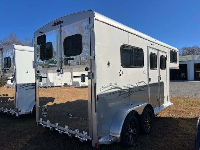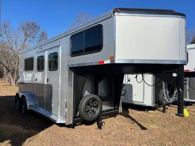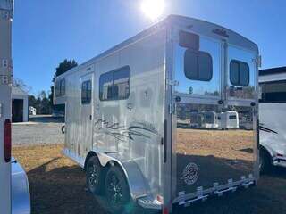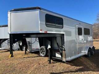 2026 Homesteader 2H GN w/Dress, 7’8”x7’, Silver, Shelby Flooring in HA, All Aluminum Roof, Aluminum Lined Ceiling and Walls, Rear Ramp w/Curtain Doors, Windows in Curtain Doors, Loading Light at Rear Ramp, Aluminum Wheels, Removeable Tubular Head and Shoulder Dividers, (2) Escape Doors, (2) Lights in HA, Rubber Lined Floor in Dress, (1) Light in Dress, Saddle Racks, Bridle Hooks, Blanket Bars, Brush Box, LED Running Lights, Mounted Spare Under GN, GVWR 7000, Empty 4509, Carry 2491