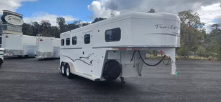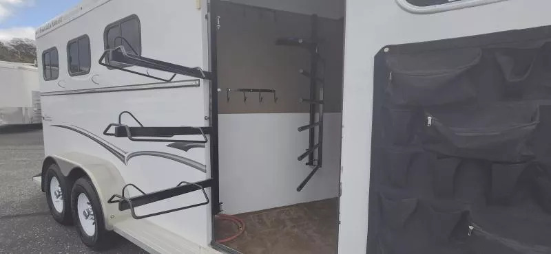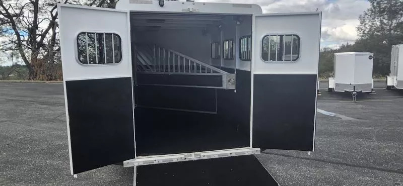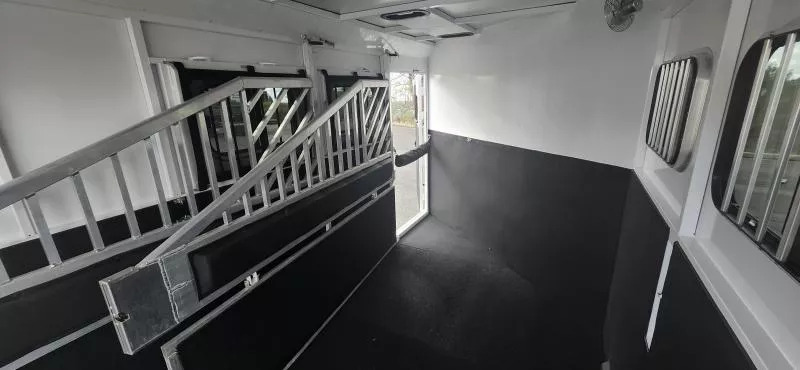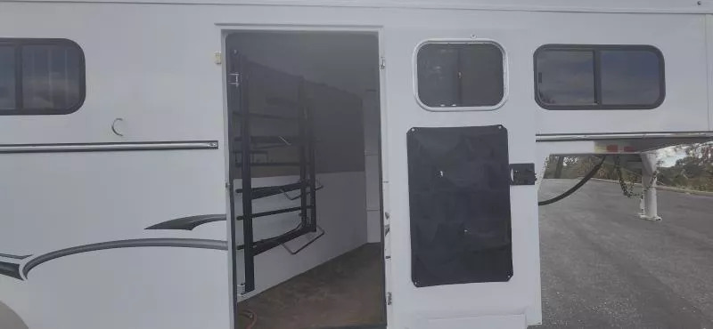Don’t miss this wonderful trailer opportunity. fully serviced with a 90 day warranty, ready to last with you and your horses for years to come. A/C Furnace - Comfort in all seasons Fully Carpeted Dressing Room & Tack Area - Stylish and functional Swing-Out Saddle Rack - Easy access and organization Escape Door - Safety and convenience Drop-Down Windows - Ventilation and visibility Double Swing-Out Rear Doors with Windows - Spacious and secure Rear Ramp - Smooth loading and unloading Electric Fans for Each Horse Stall - Keep your horses cool and comfortable