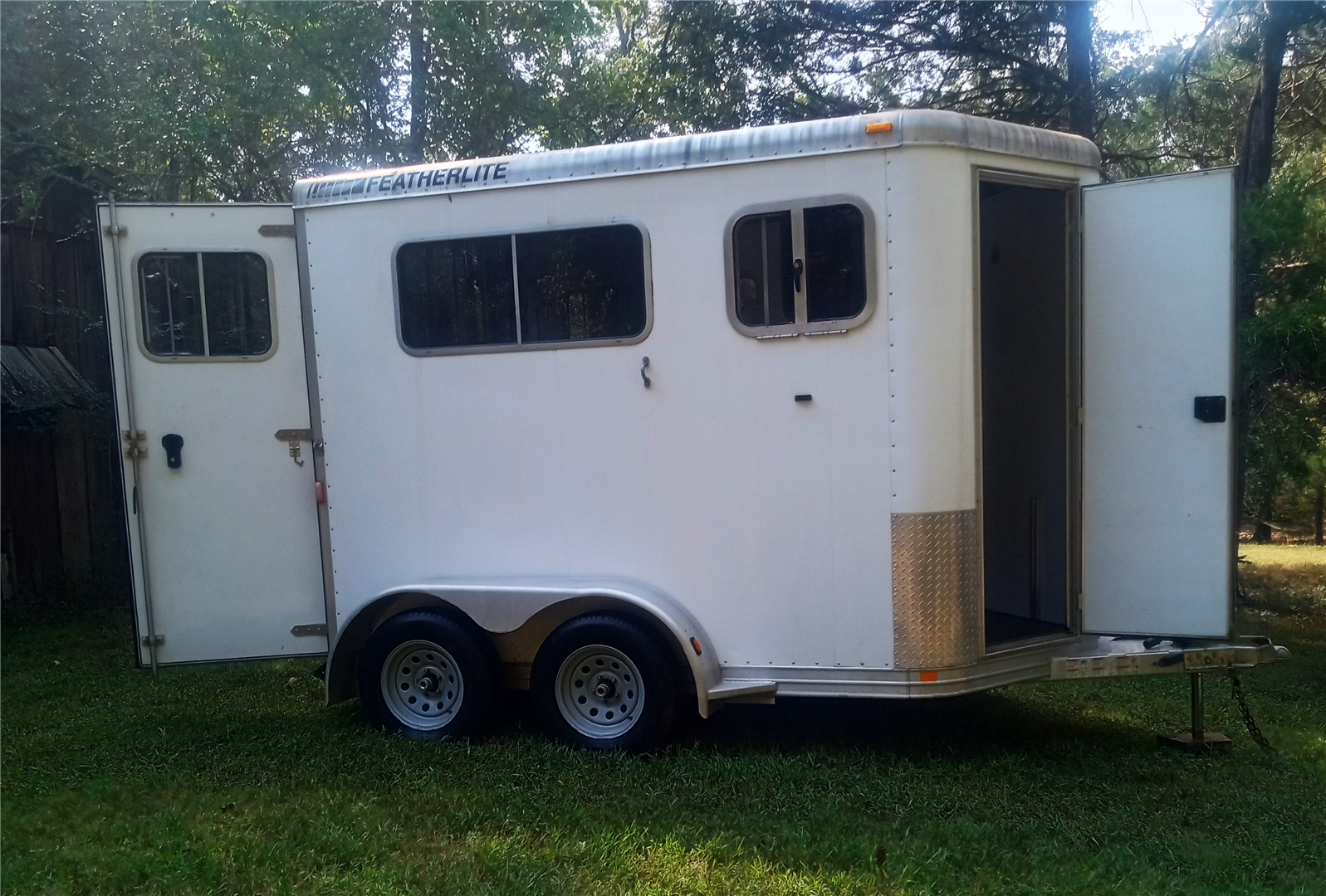 This trailer was bought new, has been used three times, and has been under covered storage for years. It is in excellent condition. It is listed at a reduced price because even though the tires look new, they are original and out of date. Nothing has been done to it except pressure washing to get rid of dust. It has a small ding in the runing board on the driver's side, other than that it is pretty much spotless. The horses are gone, owner retired, and it needs a new home.