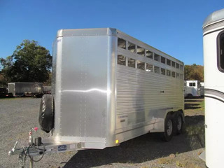 Trailers in stock: Horse Trailers, Stock Trailers, Equipment Trailers, Utility Trailers, Cargo Trailers, Dump Trailers, Car Trailers, Concession Trailers, Motorcycle Trailers, and Snowmobile Trailers.