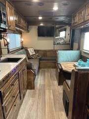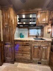 THIS TRAILER IS ON ORDER AND WILL ARRIVE IN OCTOBER Platinum Coach 4 Horse 15’ 8” short wall Outlaw Conversion features: 8 x 35 x 8 tall 78” Couch & 72” Dinette floor plan Onan 4.0 Generator with 16 gallon fuel tank 15,000 BTU A/C with heat pump 32” Smart TV’s in living and bed area Winegard Connect 2.0 antenna for WiFi AM/FM/CD/DVD player with exterior speakers 6.0 Propane / Electric refrigerator 60 gallon water tank 20,000 BTU furnace 6 gallon propane water heater Two burner recessed cooktop Convection oven over cooktop Mocha Quartz kitchen sink with pull-out fauctet Slide out trash can under pantry storage Front bench area with storage underneath 34” radius shower in bathroom Porcelain toilet in front of double rod closet with leather on lid Vanity and sink under medicine cabinet next to shower Beautiful vessel sink, custom ordered for this design Pocket door to bathroom with mirror on bathroom side 24” walk through door to horses 18’ Two-Step awning Platinum Coach features: Tri-8k axles with 16” aluminum wheels and 14 ply Goodyear tires Side load configuration, LOADED REAR TACK 3 mangers, escape door on first stall, head side 52” tall spring loaded side ramp, 46” last stall 8’ hay pod with generator landing Flow through dividers, telescoping last divider Stud divider with rubber on first stall Drop down windows on head and hip side Drop down window bars on head side Carpeted rear tack, loaded with bars, hooks, trays, and shelves 2-30# propane bottles Double aluminum battery box with ON/OFF switch 15,000# Equalizer Hydraulic jack