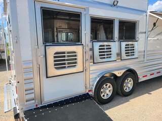 Platinum Coach 3 Horse 10’8” SIDE LOAD!! Platinum Coach Features: 8’ wide x 26’ long x 7’6” tall 7200# axles blocked 2”, 14 ply tires, aluminum wheels Side load configuration...HUGE TACK ROOM!! 52” tall spring loaded side ramp leading to 4’ stall Plenty of blanket bars, brush trays, and hooks in tack room!! 6’ hay pod with generator box on landing Two mangers, two access doors Drop down windows on head and hip Drop down window bars on head side Flow through and spring back dividers Stud divider on first stall Double aluminum battery box 3 outside LED load lights     Outlaw Conversion Features: 10’8” Proline XP living quarter with Natural Alder Ebony wood 72” sofa sleeper Onan 4.0 generator on roof with 9 gallon fuel tank Single leg hydraulic jack 6.0 propane / electric refrigerator Power awning with awning lights 28” LED TV on arm Microwave over kitchen sink AM/FM/CD/DVD player with exterior speakers 15,000 BTU A/C with heat pump 20,000 BTU furnace 6 gallon water heater, 12vDC or 120vAC Two hat racks over door 30# propane bottles x 2 While we believe all information on this website to be accurate, please confirm features and price with a salesman.
