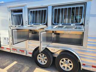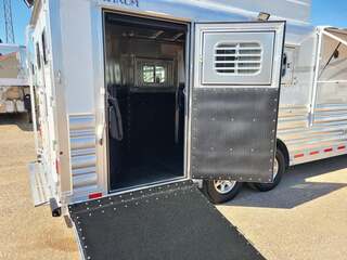 THIS TRAILER IS ON ORDER AND WILL ARRIVE IN DECEMBER Platinum Coach 3 Horse 10’8” SLIDE OUT WITH SIDE LOAD!! Platinum Coach Features: 8’ wide x 27’ long x 7’6” tall 6’5” slide out with 72” sofa inside 7200# axles blocked 2”, 14 ply tires, aluminum wheels Side load configuration...HUGE TACK ROOM!! 52” tall spring loaded side ramp leading to 4’ stall Plenty of blanket bars, brush trays, and hooks in tack room!! 6’ hay pod with generator box on landing Two mangers, two access doors Drop down windows on head and hip Drop down window bars on head side Flow through and spring back dividers Stud divider with rubber on first stall Double aluminum battery box 3 outside LED load lights     Outlaw Conversion Features: 10’8” Proline XP living quarter with Dark Alder Ebony wood 72” sofa sleeper Onan 4.0 generator on roof with 9 gallon fuel tank Single leg hydraulic jack 6.0 propane / electric refrigerator Power awning with awning lights 28” LED TV on arm Microwave over kitchen sink AM/FM/CD/DVD player with exterior speakers 15,000 BTU A/C with heat pump 20,000 BTU furnace 6 gallon water heater, 12vDC or 120vAC Two hat racks over door 30# propane bottles x 2 While we believe all information on this website to be accurate, please confirm features and price with a salesman.
