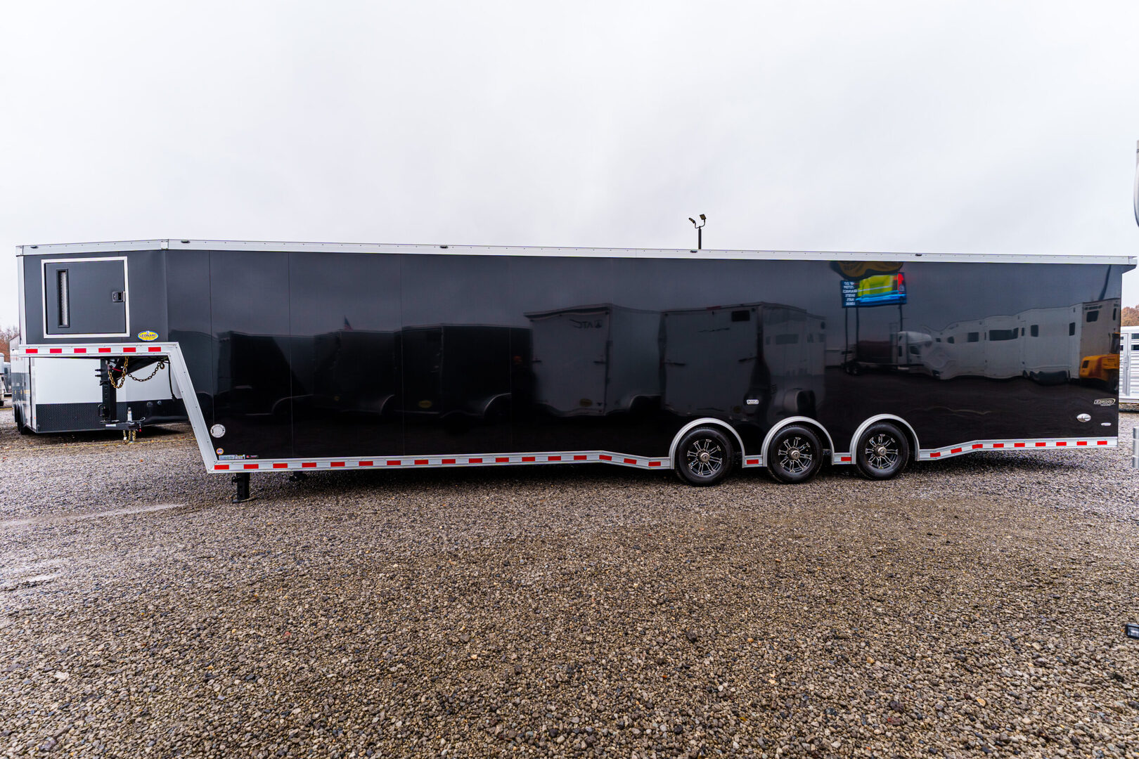 View Inventory: https://leonardtrailers.com/inventory/45096 Stock #45096 – ICON Performance Gooseneck Trailer (ICPG8544TTA4) The ICON Performance Gooseneck Trailer is engineered for serious hauling, combining strength, precision, and high-end features to meet the demands of professional users. With its rugged triple 6,000# torsion axles in a spread configuration, this trailer delivers smooth towing, exceptional stability, and a heavy-duty platform for a wide range of cargo. Heavy-Duty Construction: Built to last, this trailer features a 6” tube frame, 3/4” HDPE-engineered flooring, and 3/8” engineered walls. Tube wall and roof members are spaced 16” O.C. for maximum structural integrity. A clear anodized aluminum roof, aluminum fenders, and reinforced riser wall ensure durability while maintaining a polished, professional look. Gooseneck Design & Towing Features: The ICON taper nose enhances aerodynamics and aesthetics, while the 12K hydraulic landing jack provides easy setup and stability. A cast aluminum circular jack access door in the exterior sidewall allows convenient maintenance access. The trailer’s heavy-duty gooseneck design ensures safe, reliable towing, even with full loads. Spacious Interior & Functional Design: 53” interior riser wall with 6’ beavertail for easy cargo handling. 92” heavy-duty rear ramp door with spring assist and keyed paddle latches for safe, secure loading. Flush-mounted 48” side door with aluminum slide-out step (radius front corners) for convenient access. Multiple recessed 5,000# floor D-rings for secure cargo tie-downs. Advanced Lighting & Electrical Package: Equipped with full LED exterior lighting, including clear lens lights, intermediate side markers, strip tail lights with chrome bezels, and license plate lights. Interior and exterior 12V LED scene lights ensure visibility during loading and unloading. The trailer comes with an Interstate 24-AGM-A battery, charger indicator, exterior marine remote power outlet, battery jumper box, wiring for A/C, and a 50A load center with automatic transfer switch for reliable power management. Cabinets & Storage: Aluminum base and overhead cabinets with mill finish tops and gas-strut doors. ICON-style generator compartment (42”W x 34”H x 24”D) with gas strut side hinge. Carpeted interior walls in black and black anodized interior and cabinet trim provide a professional, finished look. Trim, Finish & Exterior Details: Clear satin anodized aluminum fenders, polished ICON rear corner castings, stainless front corners, and black wrapped rear end with Bravo Winglet deliver a sleek, high-quality appearance. Rubber ramp door hinge covers and body-matched color wrapping add both function and style. Tires & Wheels: ST235/80R16/LRE radial tires mounted on black Liger aluminum wheels with matching spare provide reliable performance and durability. Additional Features: 6’ aluminum beavertail for easy cargo loading. 48” aluminum slide-out step for convenient side access. Optional spare tire compartment with gas strut for easy access. We offer outstanding financing options, accept trades, and can arrange nationwide NO HASSLE delivery! Inquire today for more information: (888) 333-6613. Disclaimer: We believe these specifications to be accurate. Any discrepancies are unintentional. Please verify information with a sales associate prior to purchase. Stock Number:45096