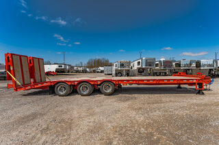 View Inventory: https://leonardtrailers.com/inventory/45090 Stock #45090 – 50,000 lb Super Duty Tag-Style Flatbed Trailer This 50,000 lb super duty tag-style flatbed is engineered to handle the toughest equipment-hauling demands. Built exclusively with air brakes and a custom-fabricated high-tensile I-beam frame (80 KSI web / 100 KSI flanges), it delivers exceptional strength and durability beyond standard mill-rolled steel. Heavy-duty 1” forged D-rings are placed every 4’ along the 8” channel side rails, ensuring secure and versatile load tie-down options. The 2” nominal oak decking and 4” junior I-beam crossmembers on 16” centers provide a dependable platform for your heaviest machinery. A 27’ main deck, 6’ wood beavertail, and wood-filled 42” x 6’ + 5’6” hydraulic bi-folding ramps make loading large equipment safe and efficient. Outfitted with (3) Dexter 22,500 lb air-brake axles—including a front axle with air ride and air lift—this trailer is designed for stability, performance, and longevity. Additional premium features such as aluminum outer wheels, rear strobe lights, and a V-shaped tongue-mounted toolbox round out this professional-grade equipment hauler. Specifications GVWR: 50,000 lbs Frame: Custom fabricated hi-tensile strength beam (80 KSI web / 100 KSI flanges) Deck: 27’ main deck Beavertail: 6’ wood beavertail Ramps: 42” wide x 6’ + 5’6” wood-filled hydraulic bi-folding ramps Axles: (3) Dexter 22,500 lb air-brake axles Front axle with air ride and air lift Suspension: Hutch 9700 spring suspension on fixed tandem Crossmembers: 4” junior I-beam on 16” centers Decking: 2” nominal oak Tie-downs: 1” forged D-rings every 4’ Side Rails: 8” channel Wheels: Aluminum wheels (outside positions) Landing Gear: Dual, dual-speed semi-style landing gears Toolbox: V-shaped tongue-mounted toolbox Lighting: Rear strobe lights Hitch: Pintle Axle Track: 77.5” Options Included Axle upgrade to air ride with air lift Hydraulic bi-folding ramps Aluminum wheels (outside positions) Rear strobe lights We offer outstanding financing options, accept trades, and can arrange nationwide NO HASSLE delivery! Inquire today for more information! Call (888) 333-6613. We believe these specifications to be accurate. Any discrepancies are unintentional. Please verify information with a sales associate prior to purchase. Stock Number:45090