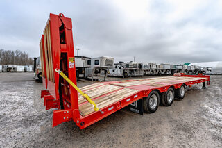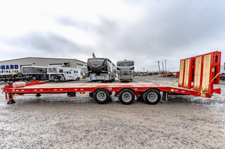 View Inventory: https://leonardtrailers.com/inventory/45091 Stock #45091 – 50,000 lb Super Duty Tag-Style Flatbed Trailer This 50,000 lb super duty tag-style flatbed is engineered to handle the toughest equipment-hauling demands. Built exclusively with air brakes and a custom-fabricated high-tensile I-beam frame (80 KSI web / 100 KSI flanges), it delivers exceptional strength and durability beyond standard mill-rolled steel. Heavy-duty 1” forged D-rings are placed every 4’ along the 8” channel side rails, ensuring secure and versatile load tie-down options. The 2” nominal oak decking and 4” junior I-beam crossmembers on 16” centers provide a dependable platform for your heaviest machinery. A 27’ main deck, 6’ wood beavertail, and wood-filled 42” x 6’ + 5’6” hydraulic bi-folding ramps make loading large equipment safe and efficient. Outfitted with (3) Dexter 22,500 lb air-brake axles—including a front axle with air ride and air lift—this trailer is designed for stability, performance, and longevity. Additional premium features such as aluminum outer wheels, rear strobe lights, and a V-shaped tongue-mounted toolbox round out this professional-grade equipment hauler. Specifications GVWR: 50,000 lbs Frame: Custom fabricated hi-tensile strength beam (80 KSI web / 100 KSI flanges) Deck: 27’ main deck Beavertail: 6’ wood beavertail Ramps: 42” wide x 6’ + 5’6” wood-filled hydraulic bi-folding ramps Axles: (3) Dexter 22,500 lb air-brake axles Front axle with air ride and air lift Suspension: Hutch 9700 spring suspension on fixed tandem Crossmembers: 4” junior I-beam on 16” centers Decking: 2” nominal oak Tie-downs: 1” forged D-rings every 4’ Side Rails: 8” channel Wheels: Aluminum wheels (outside positions) Landing Gear: Dual, dual-speed semi-style landing gears Toolbox: V-shaped tongue-mounted toolbox Lighting: Rear strobe lights Hitch: Pintle Axle Track: 77.5” Options Included Axle upgrade to air ride with air lift Hydraulic bi-folding ramps Aluminum wheels (outside positions) Rear strobe lights We offer outstanding financing options, accept trades, and can arrange nationwide NO HASSLE delivery! Inquire today for more information! Call (888) 333-6613. We believe these specifications to be accurate. Any discrepancies are unintentional. Please verify information with a sales associate prior to purchase. Stock Number:45091