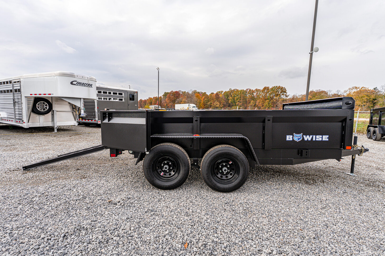 View Inventory: https://leonardtrailers.com/inventory/45174 Stock# 45174 New 2026 Bwise DT612LP-LE-10-A Dump Low Pro Dump Trailer The DT Channel Frame Low Profile Dump Trailers are the go-to low profile dump models for your homeowner and light duty commercial projects. With standard features to keep your dump trailer hauling projects moving easy and efficiently. Model:DT612LP-LE-10-A Warranty: 2yr- Structural  DT10 – DT612LP-LE-10-A Dump Trailer (Low Profile) General Color: Hammertone Black Model: DT612LP-LE-10-A (Dump Low Pro) Dimensions: 72” W x 12’ L GVWR: 9,990 lbs Frame & Structure Main Frame: 6” channel Bed Sides: Formed bed sides Coupler & Jack Coupler: 2-5/16” A-frame coupler Jack: 5,000 lb top wind jack Axles & Suspension Axles: (2) 6,000 lb tandem axles, electric brakes Tires & Wheels Tires: ST225/75R15D radial, black modular wheels Hydraulics & Battery Cylinder: 4” single-acting cylinder Battery: Deep cycle battery Body & Gate Gate: Combo gate with ramps and D-rings Accessories Tarp Kit: 6’ tarp kit included We offer outstanding financing options, accept trades, and can arrange nationwide NO HASSLE delivery! Inquire today for more information! (888) 333-6613 **We believe these specifications to be accurate. Any discrepancies are unintentional. Please verify information with a sales associate prior to purchase.** Stock Number:45174