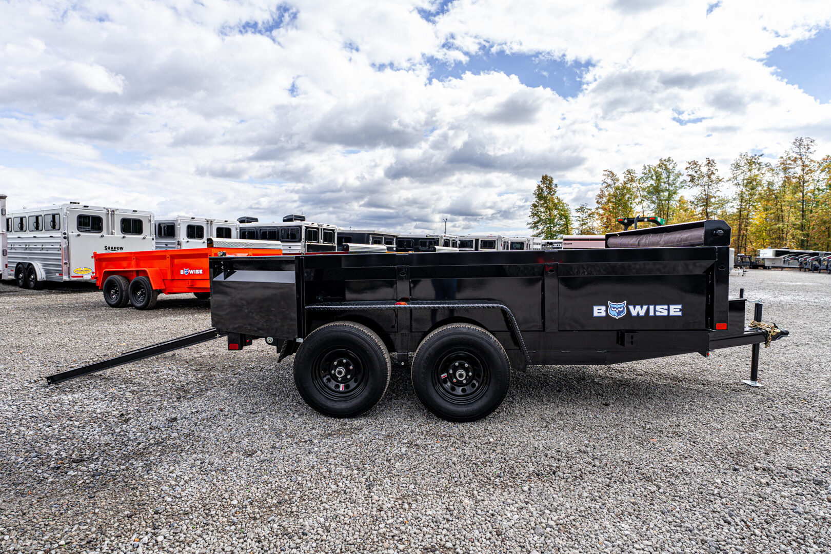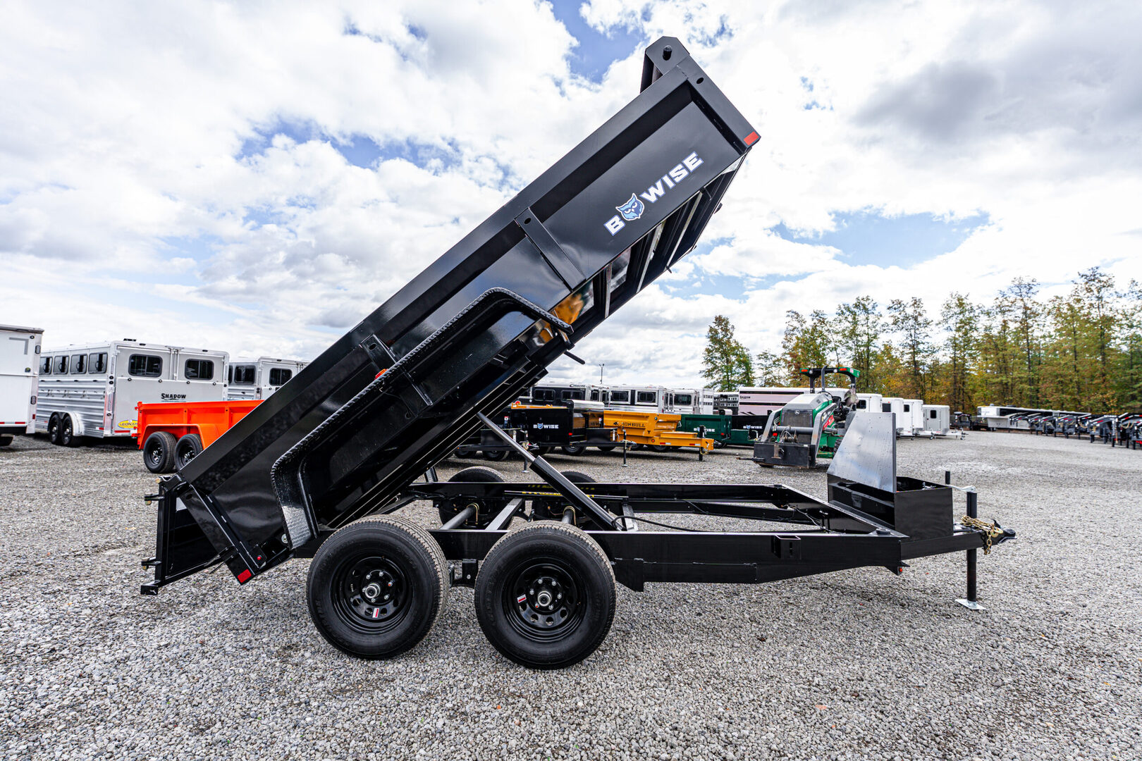 View Inventory: https://leonardtrailers.com/inventory/45170 Stock# 45170 New 2026 Bwise DT612LP-LE-10-A Dump Low Pro Dump Trailer The DT Channel Frame Low Profile Dump Trailers are the go-to low profile dump models for your homeowner and light duty commercial projects. With standard features to keep your dump trailer hauling projects moving easy and efficiently. Model:DT612LP-LE-10-A Warranty: 2yr- Structural  DT10 – DT612LP-LE-10-A Dump Trailer (Low Profile) General Color: Black Model: DT612LP-LE-10-A (Dump Low Pro) Dimensions: 72” W x 12’ L GVWR: 9,990 lbs Frame & Structure Main Frame: 6” channel Bed Sides: Formed bed sides Coupler & Jack Coupler: 2-5/16” A-frame coupler Jack: 5,000 lb top wind jack Axles & Suspension Axles: (2) 6,000 lb tandem axles, electric brakes Tires & Wheels Tires: ST225/75R15D radial, black modular wheels Hydraulics & Battery Cylinder: 4” single-acting cylinder Battery: Deep cycle battery Body & Gate Gate: Combo gate with ramps and D-rings Accessories Tarp Kit: 6’ tarp kit included We offer outstanding financing options, accept trades, and can arrange nationwide NO HASSLE delivery! Inquire today for more information! (888) 333-6613 **We believe these specifications to be accurate. Any discrepancies are unintentional. Please verify information with a sales associate prior to purchase.** Stock Number:45170
