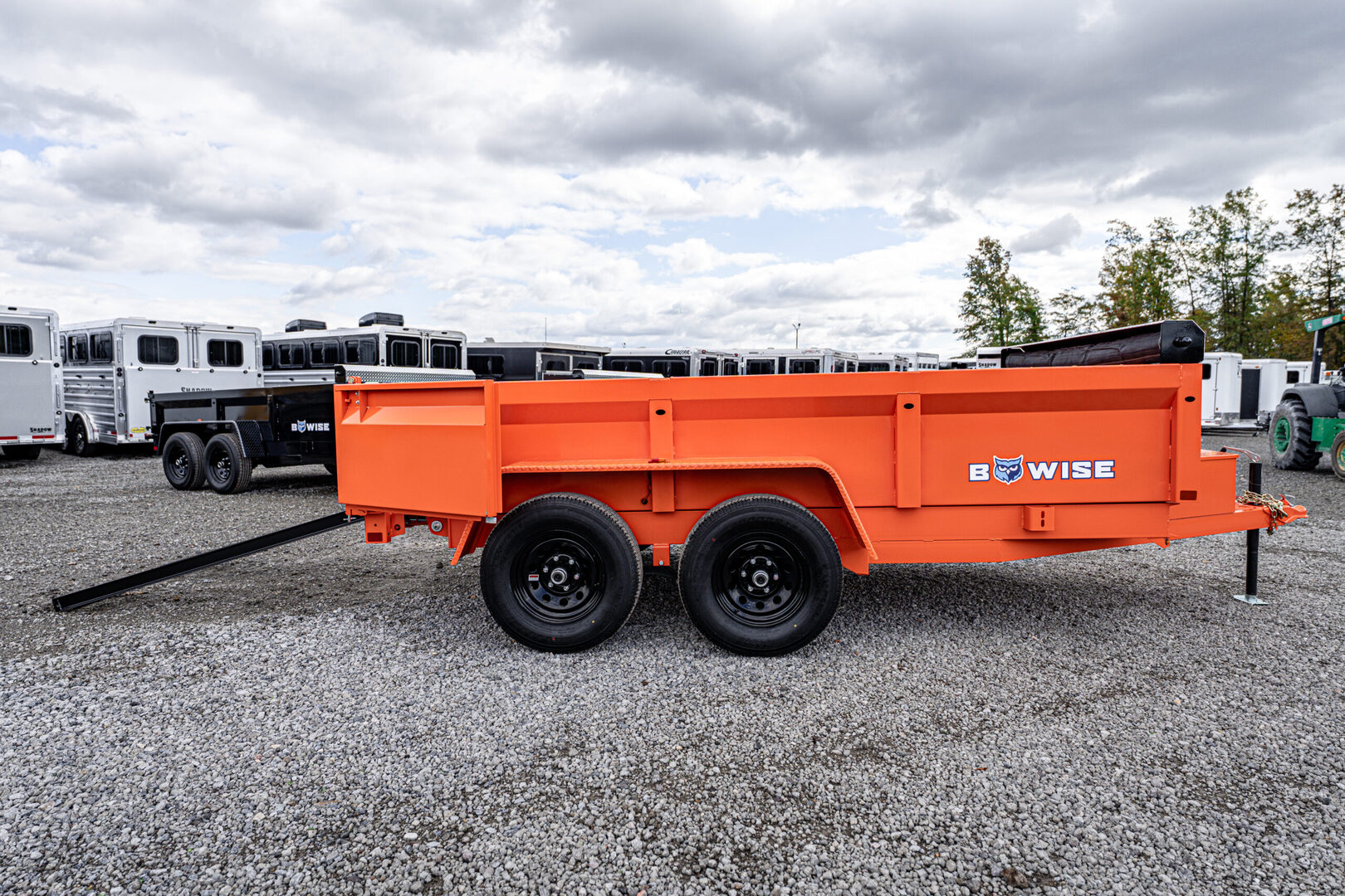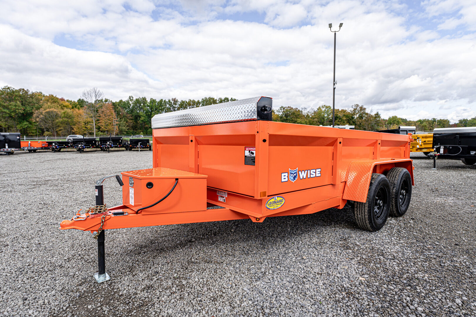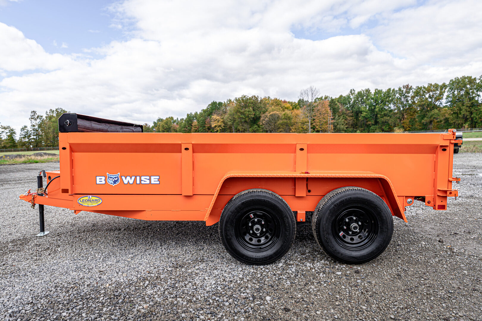 View Inventory: https://leonardtrailers.com/inventory/45171 Stock# 45171 New 2026 Bwise DT612LP-LE-10-A Dump Low Pro Dump Trailer The DT Channel Frame Low Profile Dump Trailers are the go-to low profile dump models for your homeowner and light duty commercial projects. With standard features to keep your dump trailer hauling projects moving easy and efficiently. Model:DT612LP-LE-10-A Warranty: 2yr- Structural  DT10 – DT612LP-LE-10-A Dump Trailer (Low Profile) General Color: Orange Model: DT612LP-LE-10-A (Dump Low Pro) Dimensions: 72” W x 12’ L GVWR: 9,990 lbs Frame & Structure Main Frame: 6” channel Bed Sides: Formed bed sides Coupler & Jack Coupler: 2-5/16” A-frame coupler Jack: 5,000 lb top wind jack Axles & Suspension Axles: (2) 6,000 lb tandem axles, electric brakes Tires & Wheels Tires: ST225/75R15D radial, black modular wheels Hydraulics & Battery Cylinder: 4” single-acting cylinder Battery: Deep cycle battery Body & Gate Gate: Combo gate with ramps and D-rings Accessories Tarp Kit: 6’ tarp kit included We offer outstanding financing options, accept trades, and can arrange nationwide NO HASSLE delivery! Inquire today for more information! (888) 333-6613 **We believe these specifications to be accurate. Any discrepancies are unintentional. Please verify information with a sales associate prior to purchase.** Stock Number:45171