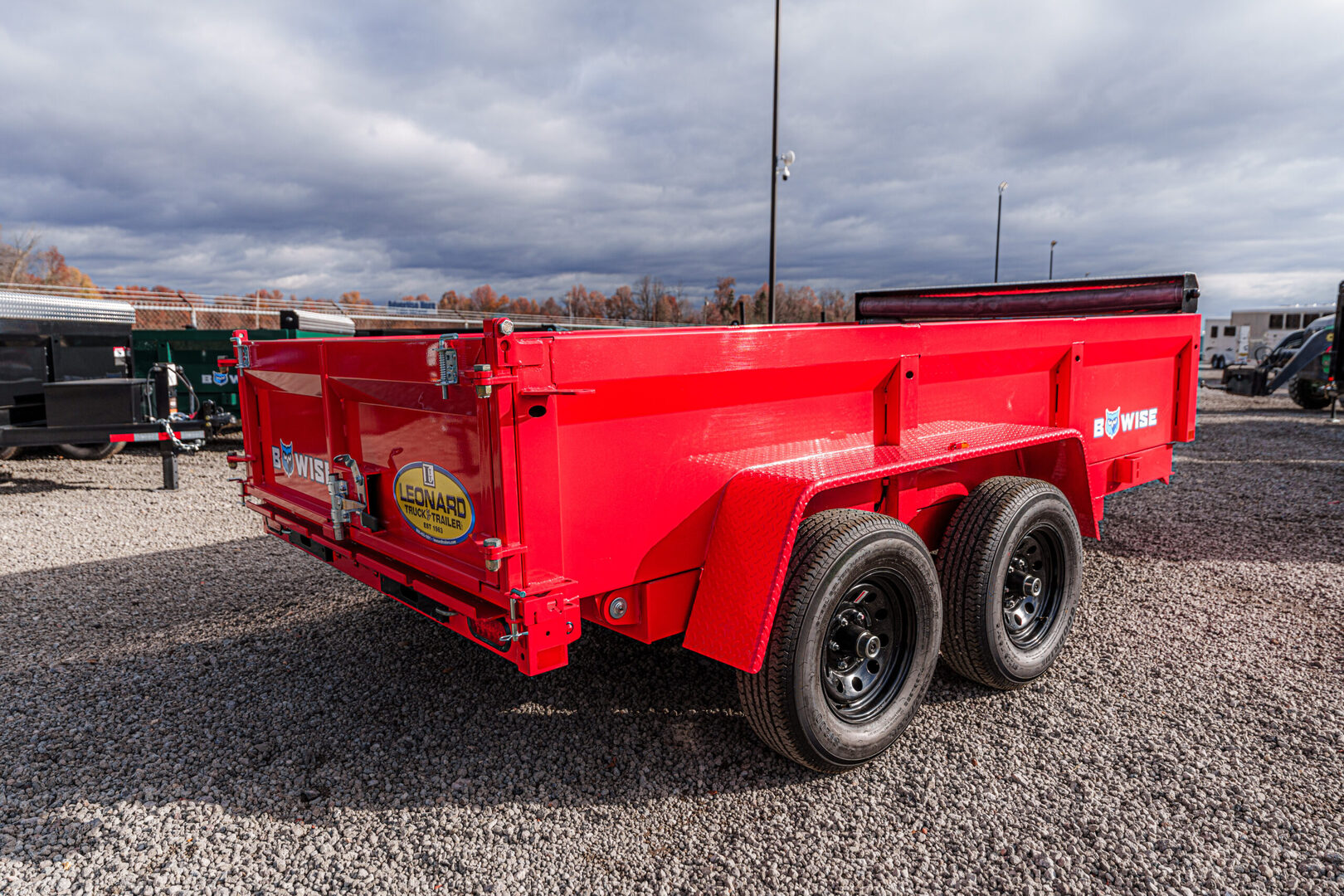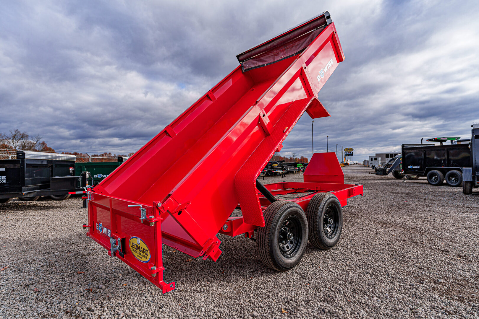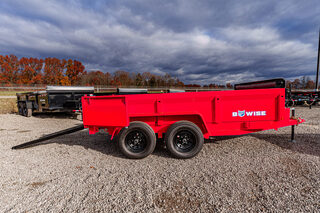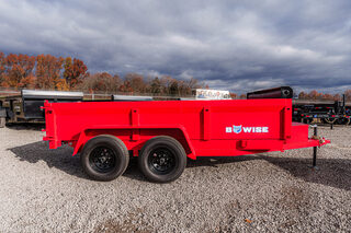 View Inventory: https://leonardtrailers.com/inventory/45173 Stock# 45173 New 2026 Bwise DT612LP-LE-10-A Dump Low Pro Dump Trailer The DT Channel Frame Low Profile Dump Trailers are the go-to low profile dump models for your homeowner and light duty commercial projects. With standard features to keep your dump trailer hauling projects moving easy and efficiently. Model:DT612LP-LE-10-A Warranty: 2yr- Structural  DT10 – DT612LP-LE-10-A Dump Trailer (Low Profile) General Color: Red Model: DT612LP-LE-10-A (Dump Low Pro) Dimensions: 72” W x 12’ L GVWR: 9,990 lbs Frame & Structure Main Frame: 6” channel Bed Sides: Formed bed sides Coupler & Jack Coupler: 2-5/16” A-frame coupler Jack: 5,000 lb top wind jack Axles & Suspension Axles: (2) 6,000 lb tandem axles, electric brakes Tires & Wheels Tires: ST225/75R15D radial, black modular wheels Hydraulics & Battery Cylinder: 4” single-acting cylinder Battery: Deep cycle battery Body & Gate Gate: Combo gate with ramps and D-rings Accessories Tarp Kit: 6’ tarp kit included We offer outstanding financing options, accept trades, and can arrange nationwide NO HASSLE delivery! Inquire today for more information! (888) 333-6613 **We believe these specifications to be accurate. Any discrepancies are unintentional. Please verify information with a sales associate prior to purchase.** Stock Number:45173