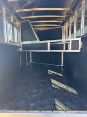 This SUV friendly 3 Horse has wood floors with rubber mats, escape door on first stall, (2) tie rings per stall, drop windows on the head and stock sides on the hip and rear door with removable plexi along with a rear load light. Tack area has a folding tack wall with (3) saddle racks and bridal hooks and a brush box.
