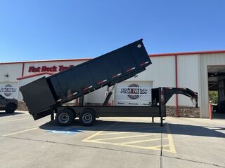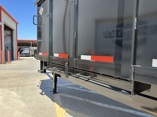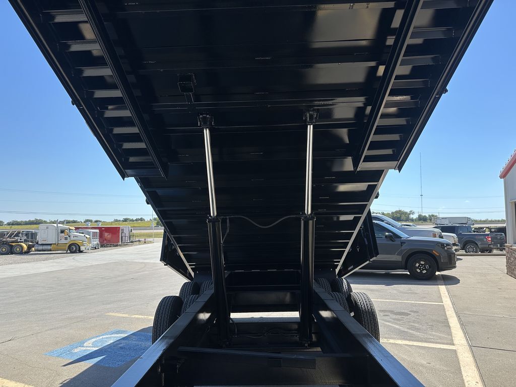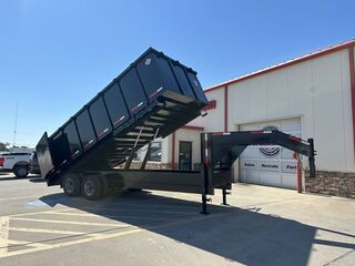 8’ x 20’ x 4’ Tandem Dual GN Dump Trailer (95 in. Interior Clearance) 2 x 12,000 lb. Brake Axles (12 in. x 5 in. Brake Shoes) Heavy Duty Slipper Spring Suspension New ST235/80R16 LRE 10ply radials (3,520 lb.) Equipment Ramps Walls1/8 in. Sheet Steel 12 in. I Beam Main Frame 12 in. I beam Neck and Riser Deck width: 8 ft Deck Length: 20 ft Deck Height: Approximately 36 in. Side Wall Height: 48 in. Dual 4 in. x 48 in. Hydraulic Cylinders Rear Doors: Double swing doors (open like barn doors) Toolbox: Front locking toolbox contains battery and pump 2 x 12K Drop Leg Jacks All flush mount or recessed lifetime LED   Empty Weight 9,240 lb. G.V.W.R. 25,999 lb. Carrying Capacity 16,759 lb.