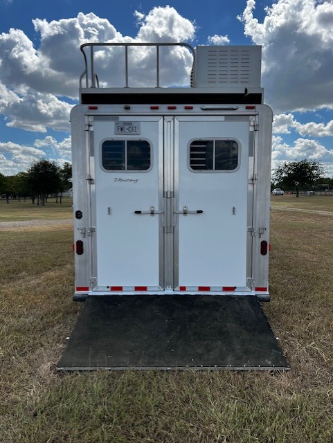 Original owner has this Elite 3 horse aluminum trailer with 12'8 living quarters for sale located in Midlothian Texas. This trailer is in immaculate condition and has been kept under cover since day 1. The trailer has been pulled less than 4,000 miles and is like new in every aspect. The LQ's have the Outback conversion. It also has a factory installed generator on top of the hay rack, drop down windows both sides, mangers, collapsible tack area, interior and exterior load lights and 14 ply load range G tires that show no wear or scuffs. This trailer looks like it rolled off the lot yesterday and is priced to sell. Clear title in hand.