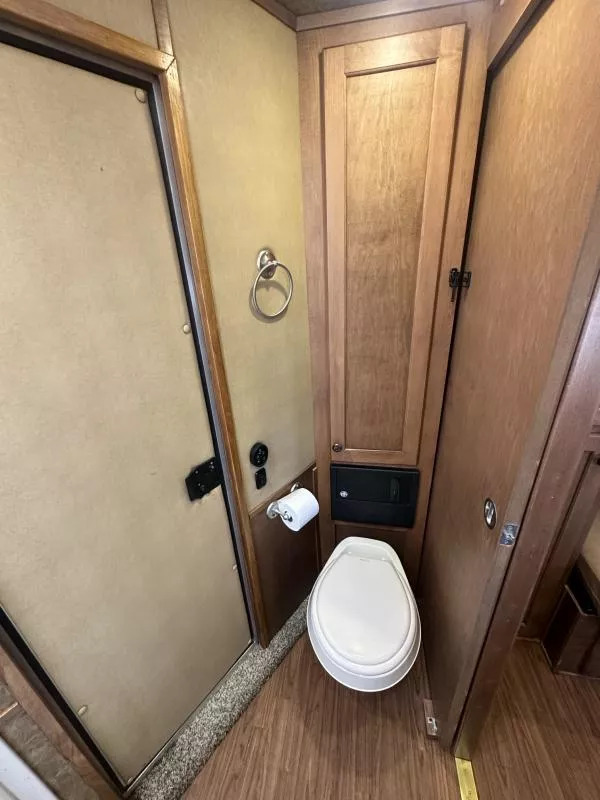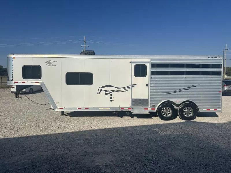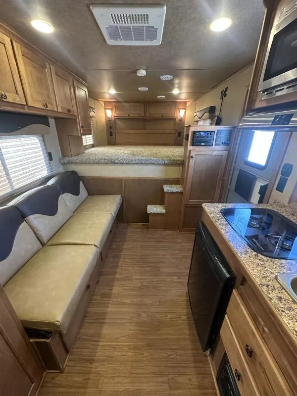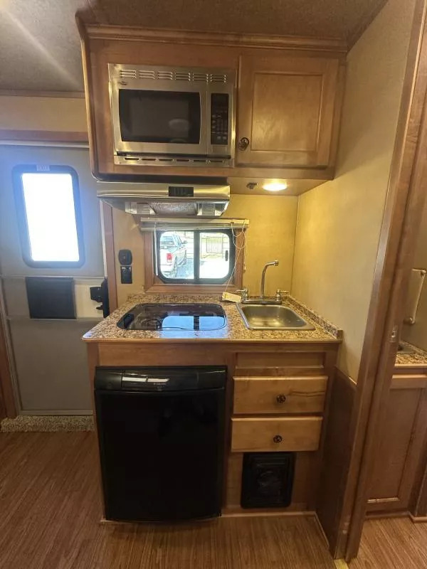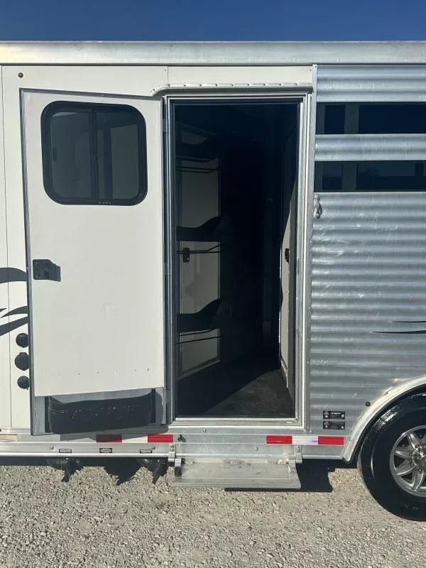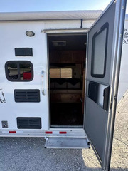 Other Features - 14’ awning, walk thru from LQ to mid tack, walk thru from mid tack to horse box, hydraulic jack, tires have 90% tread, 235/80R16 tires, spare tire, rubber bumper, rear LED load light, dual propane tanks, battery box w/ battery, light under the nose, aluminum wheels, 6 exterior tie rings, LED clearance lights.