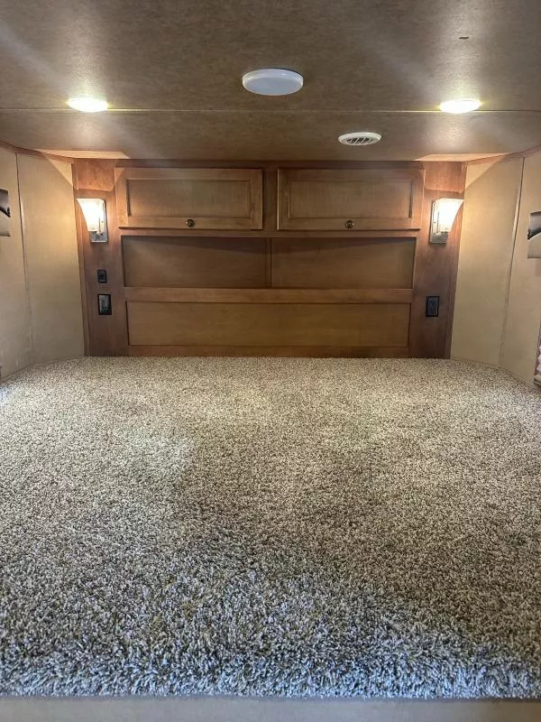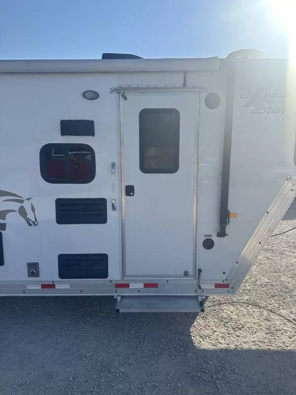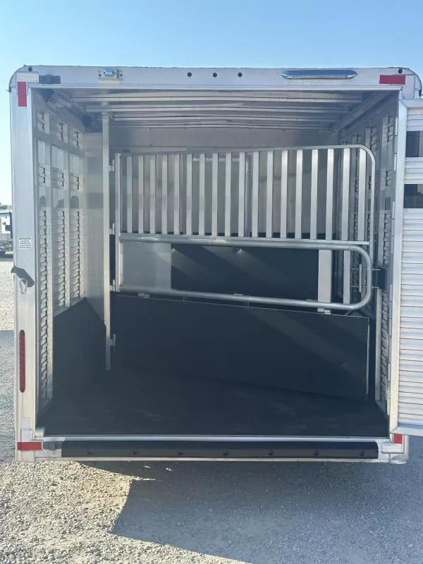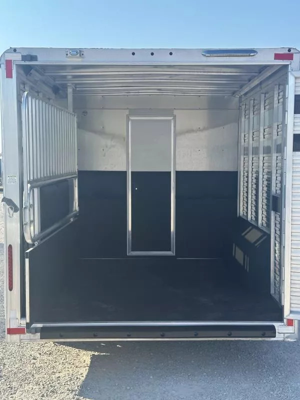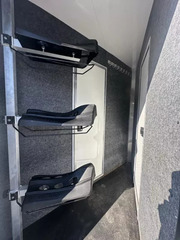 Horse Area - Rubber mats, interior LED load light, rear full swing gate w/ slide, padded removeable divider w/ drop down petition, 2 air spaces w/ removeable plexiglass.
