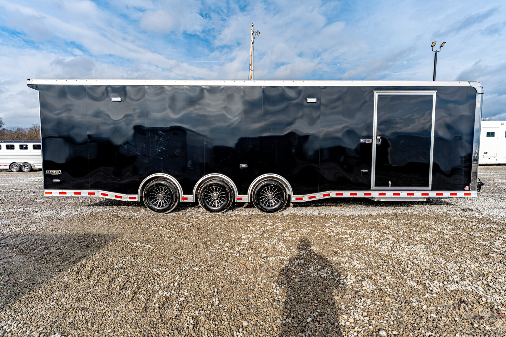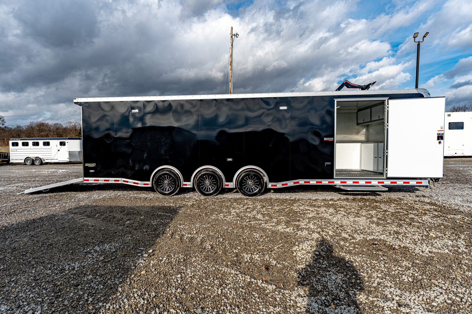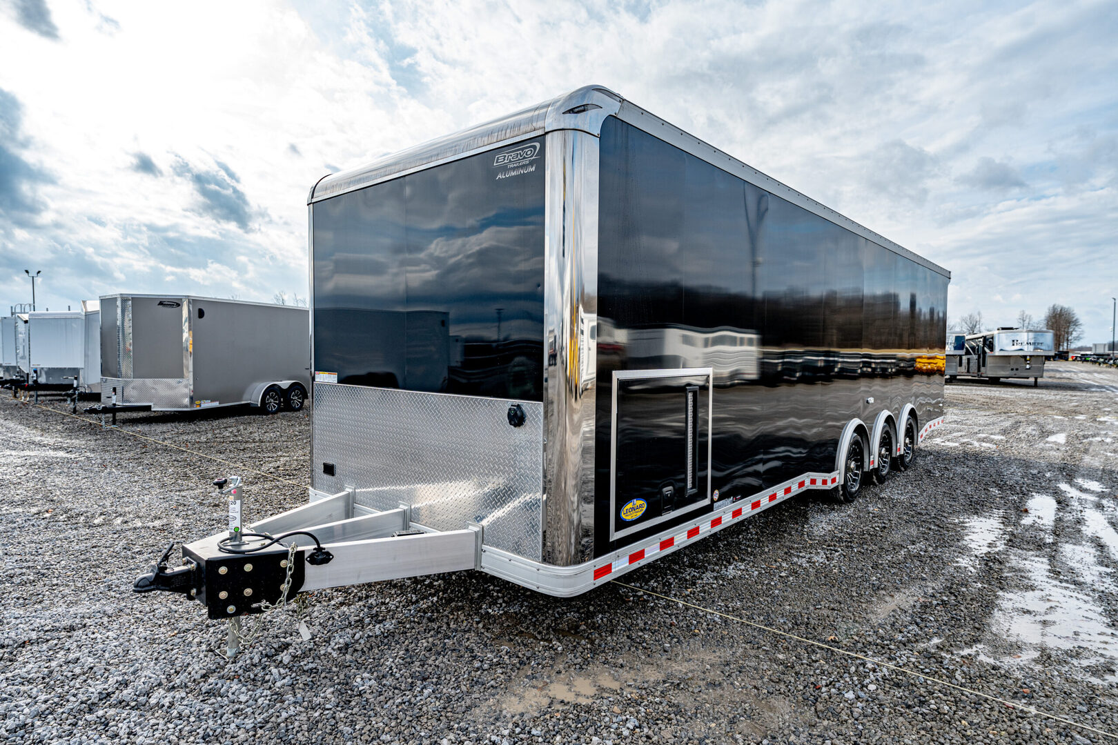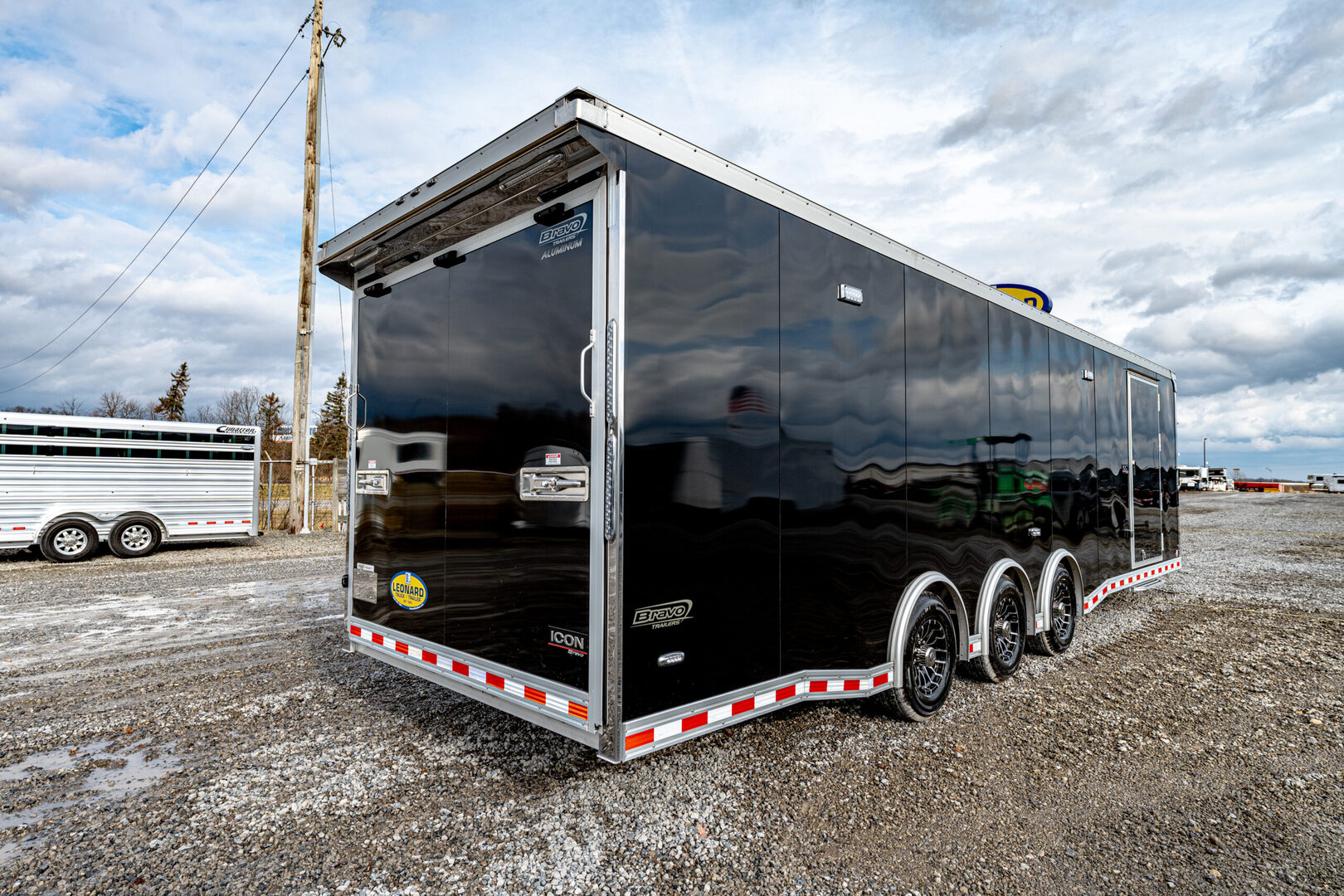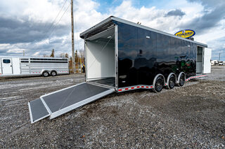 View Inventory: https://leonardtrailers.com/inventory/45220 Stock # 45220 Bravo ICON 8.5’ x 30’ Aluminum Performance Trailer Model #: AICP8530TTA4 Overview This 8.5’ x 30’ Bravo ICON trailer is built for high-performance hauling with an all-aluminum frame, triple 6,000 lb torsion axles, and a premium interior and exterior finish. Designed for professionals, racers, or anyone needing a serious transport solution. ? Key Construction All-aluminum frame with 8” double hollow main beams Triple 6,000 lb torsion spread axles with electric brakes 16” O.C. aluminum crossmembers, walls, and roof bows 2-5/16” 25K coupler & 54” triple tube tongue 6’ beavertail for easier loading Exterior .040” black screwless aluminum skin (VHB fastenerless) Polished ICON-style corner castings & satin anodized trim Bravo winglet with 8” roof extension Aluminum roof & fenders, 36” ATP stoneguard Rear ramp door with spring assist, flap, and stainless trim 48” side door with flushlock & 42” slide-out step Lighting & Electrical (8) 14” interior LED lights, (2) mini scene lights LED tail lights, side markers, and license light 12V battery system with charge indicator & kill switch 30A power center with converter, fuse block, & transfer switch Interior & exterior 110V outlets, marine remote power plug Pre-wired for A/C ? Interior Features Screwless white aluminum walls & ceiling 3/4” black coin flooring (main floor, ramp, flap) L-base cabinet with mill finish top + overhead storage Generator compartment with dedicated door (4) recessed 5,000 lb D-rings Wheels & Upgrades ST235/80R16 radial tires Black Eagle aluminum wheels Bogey wheels (rear skid rollers) Perfect for motorsports, contractor work, or premium cargo transport — this trailer combines rugged performance with a clean, professional finish inside and out.   We offer outstanding financing options, accept trades, and can arrange nationwide NO HASSLE delivery! Inquire today for more information! (888) 333-6613 **We believe these specifications to be accurate. Any discrepancies are unintentional. Please verify information with a sales associate prior to purchase.** Stock Number:45220