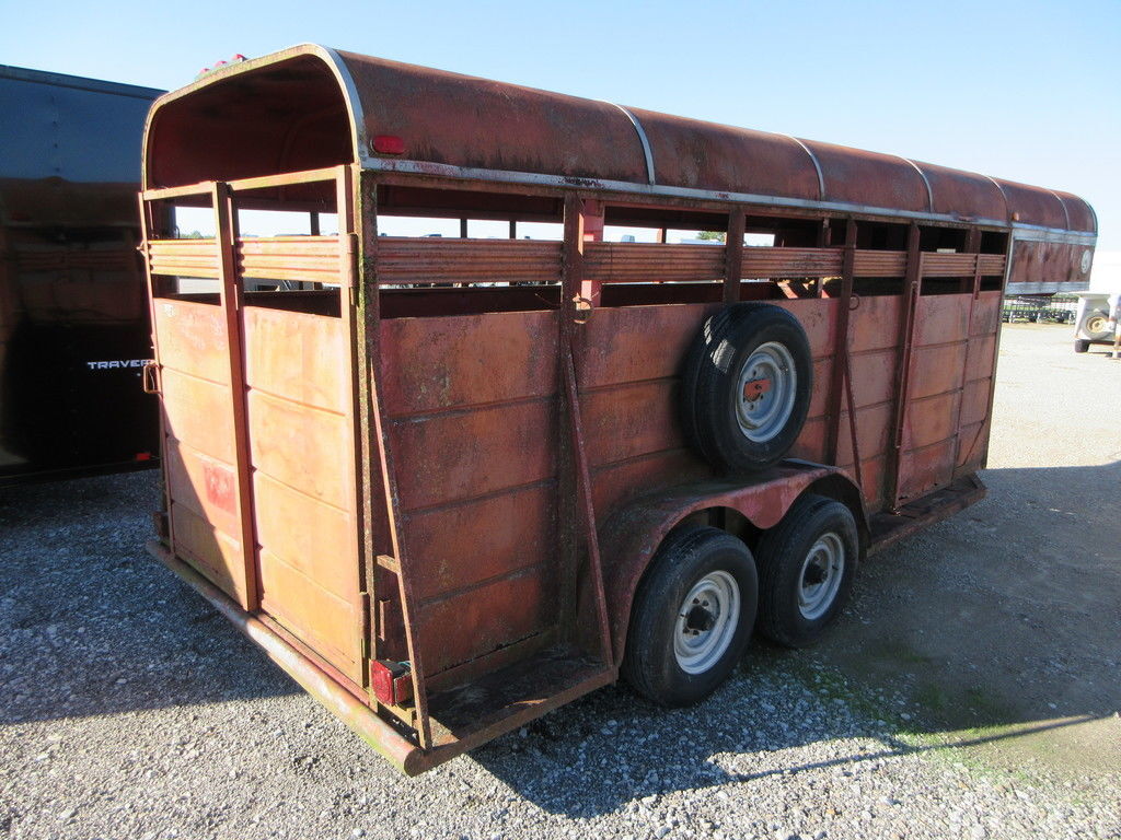 1988 Ponderosa 16’ Stock Trailer, 6’ wide 6’6” Tall New axles and tires, Lots of surface rust and rust through in spots. Solid floor. Main Trailer Sales, LLC 812-524-7986 Financing available with approved credit. www.maintrailersales.com 905 S. Commerce Drive Seymour, IN 47274. Stock#4077 1988 Ponderosa 16’ Stock Trailer, 6’ wide 6’6” Tall New axles and tires, Lots of surface rust and rust through in spots. Solid floor. Main Trailer Sales, LLC 812-524-7986 Financing available with approved credit. www.maintrailersales.com 905 S. Commerce Drive Seymour, IN 47274. Stock#4077