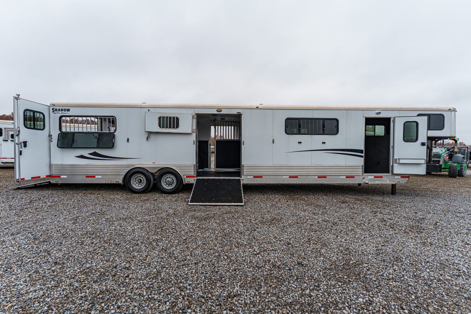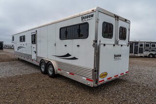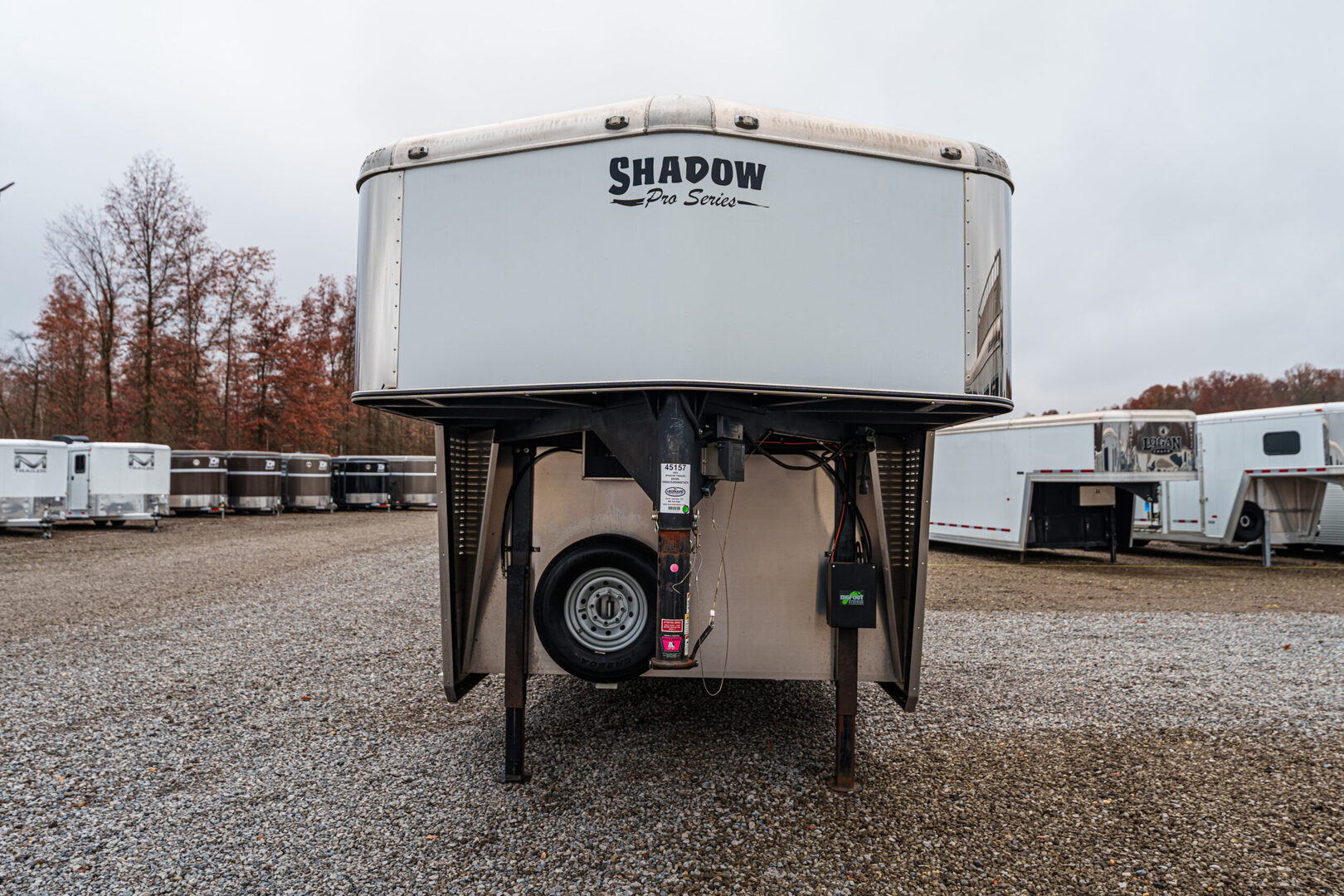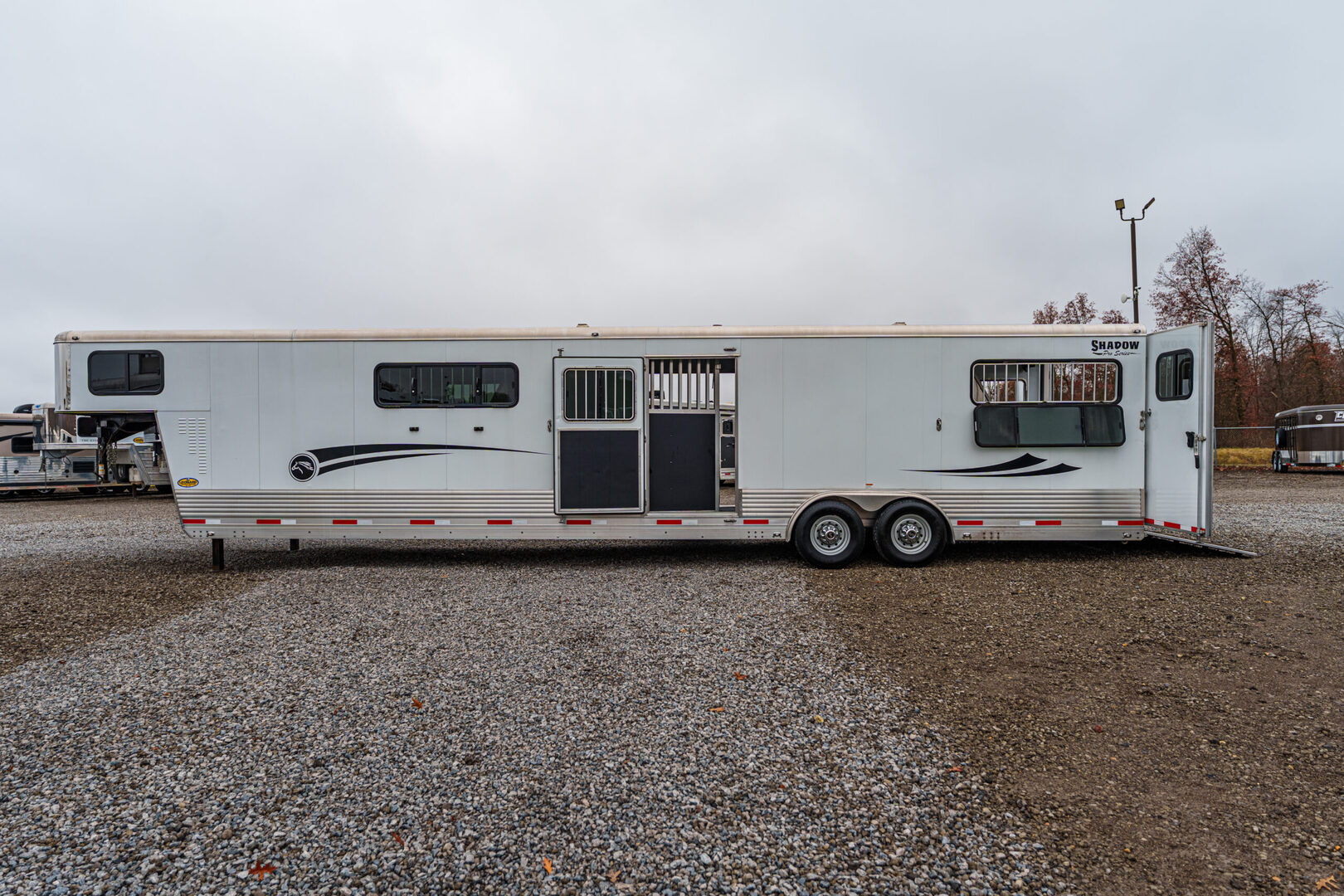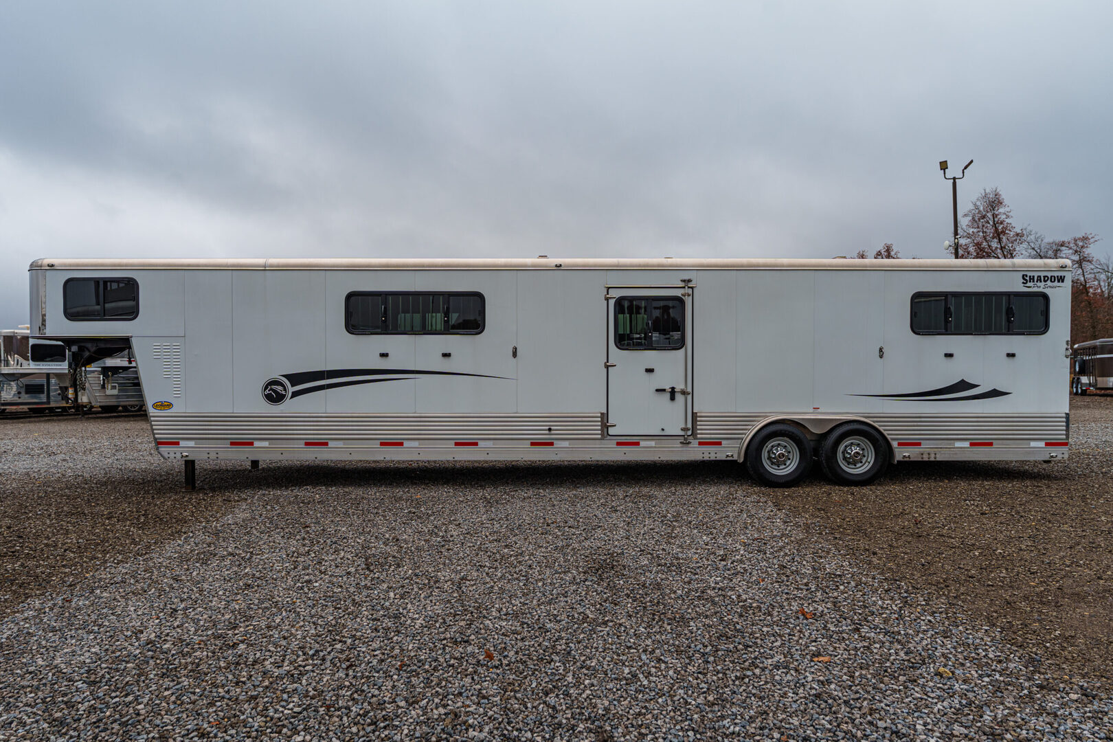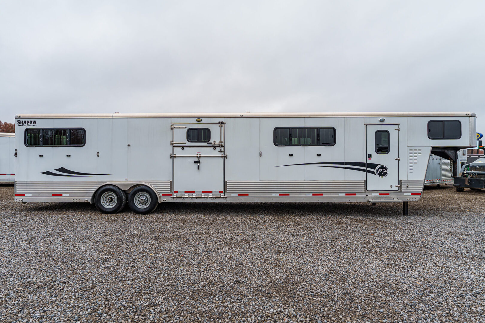 View Inventory: https://leonardtrailers.com/inventory/45157 Stock# 45157 Used 2022 SHADOW 6 Horse GN Trailer   General Information Coupler Size: 2 5/16” Adjustable: Yes Roof: Aluminum Primary Color: White Length: 35’ Width: 8’ Height: 7’ 6” Horse Area Type: Head to Head Options: Mats Pads  Vents  Lights  Hayrack  Rubber Lining: Complete Door / Gate Double Rear Doors Ramp w/ Tail Doors Dressing Room Size: 6’ Type: Straight Options: Lined/Insulated Carpet  Saddle Rack Location  Specifications GVW: 16,000 lbs Axle Size: 8,000 lbs each Tire Size: 16” # of Brakes: 4 W/B Brakes: Electric Ride Type: Rubber Ride Jacks: Dual Hydraulic We offer outstanding financing options, accept trades, and can arrange nationwide NO HASSLE delivery! Inquire today for more information! (888) 333-6613 **We believe these specifications to be accurate. Any discrepancies are unintentional. Please verify information with a sales associate prior to purchase.** Stock Number:45157