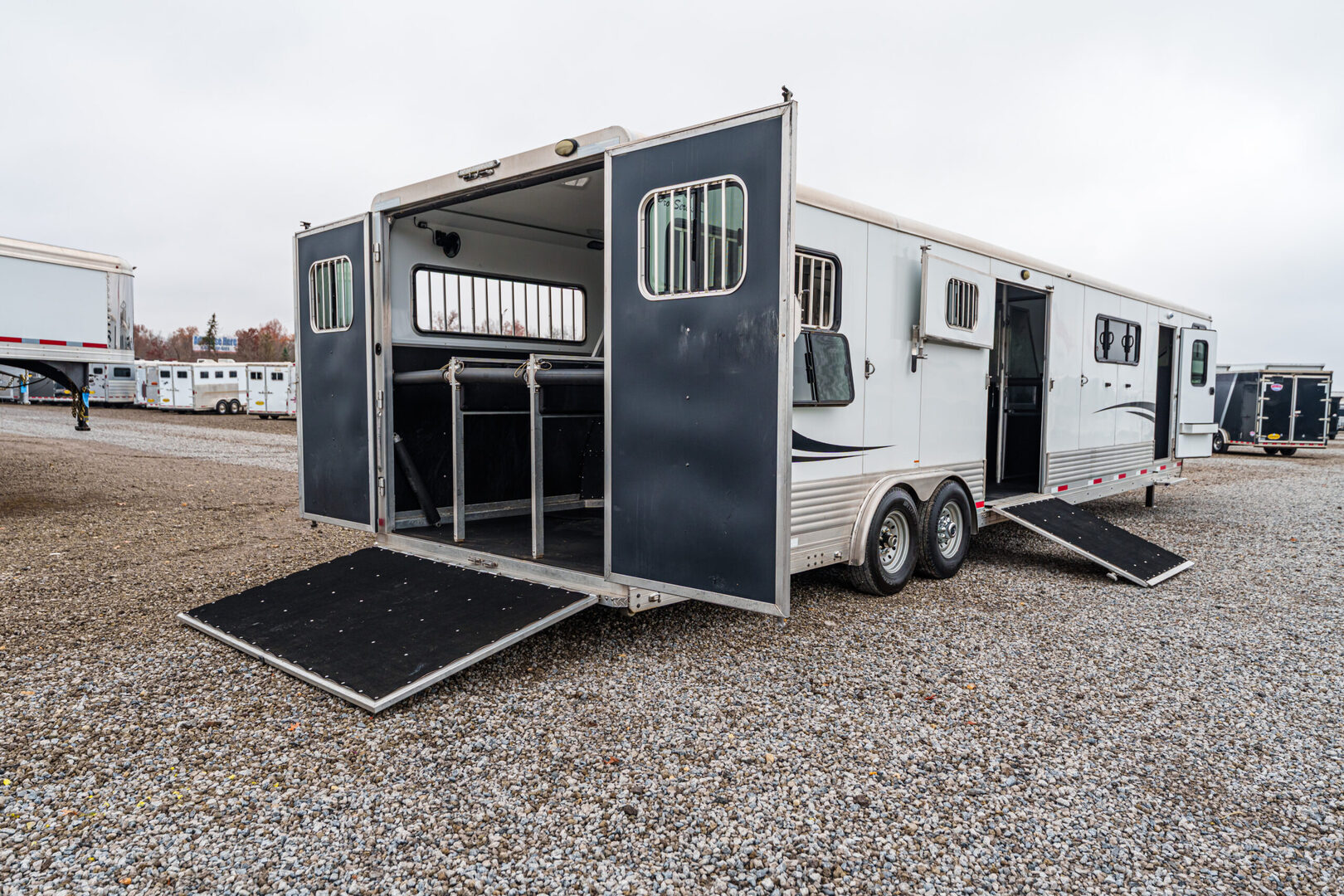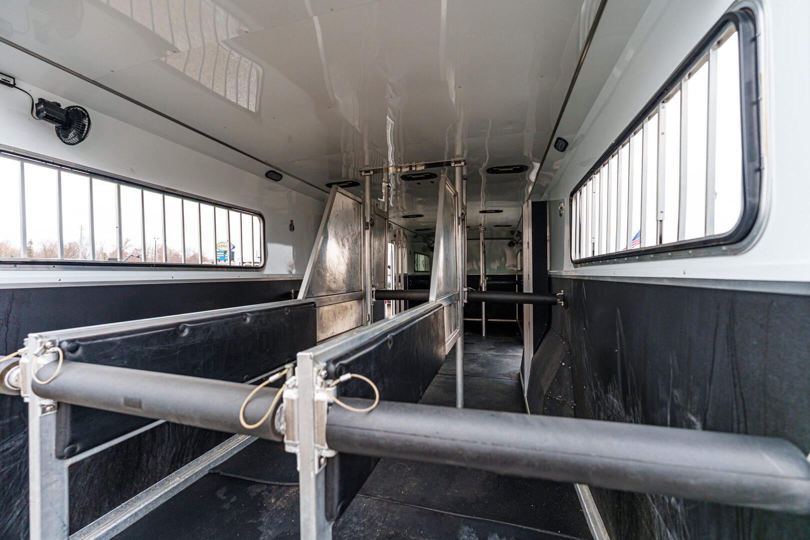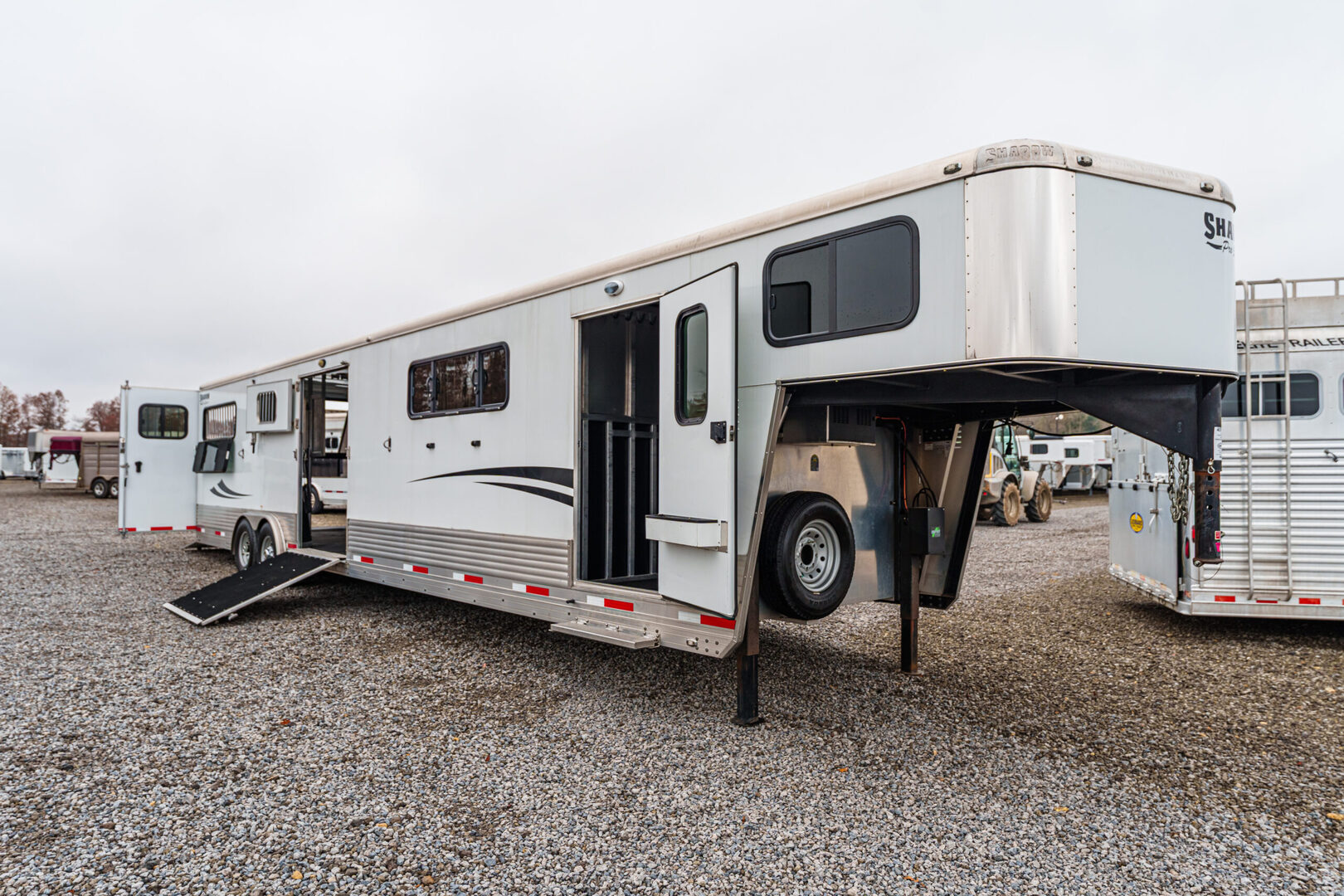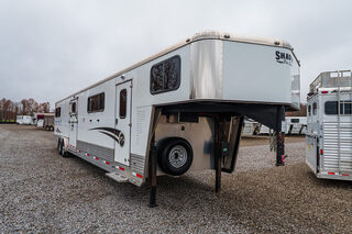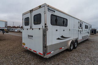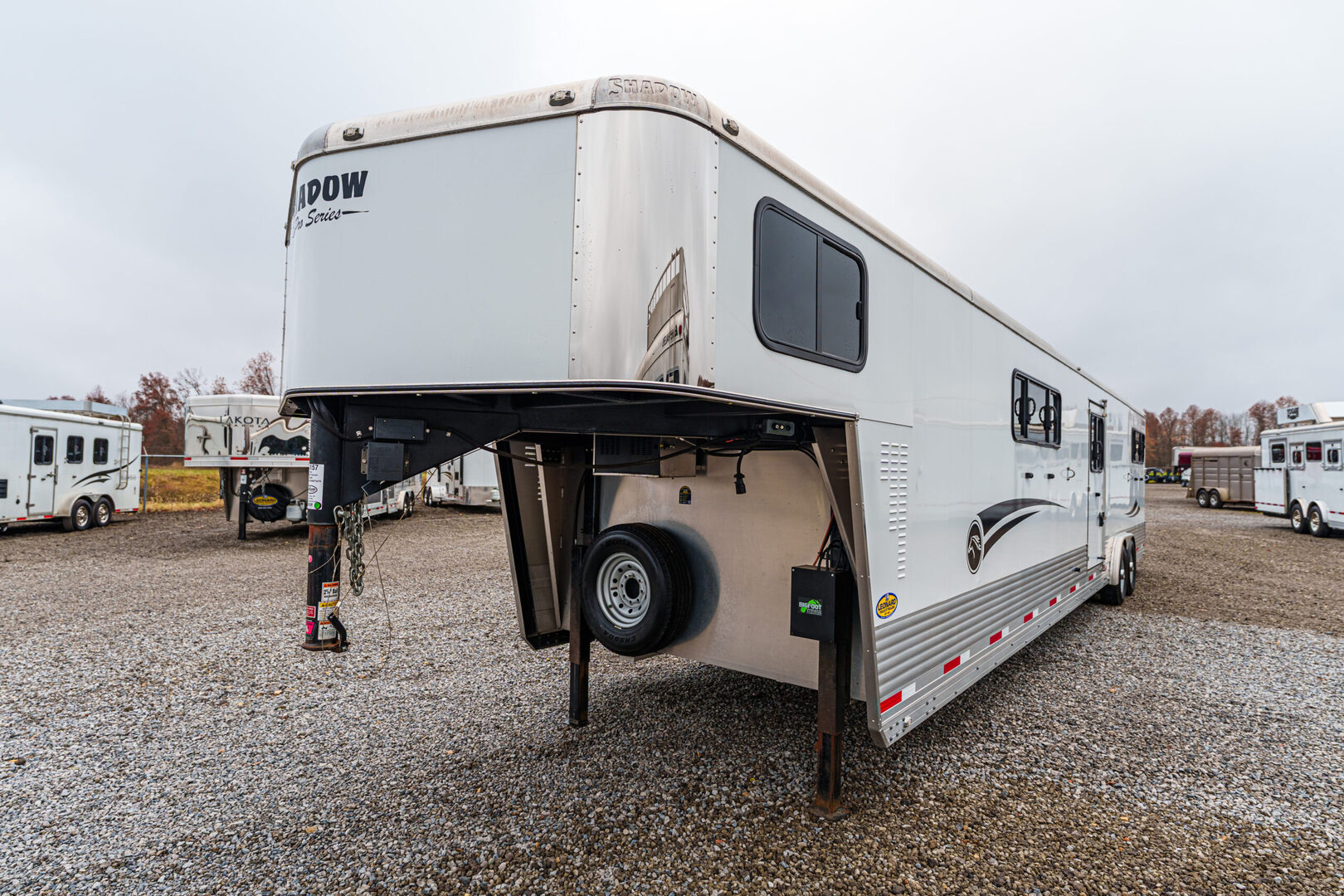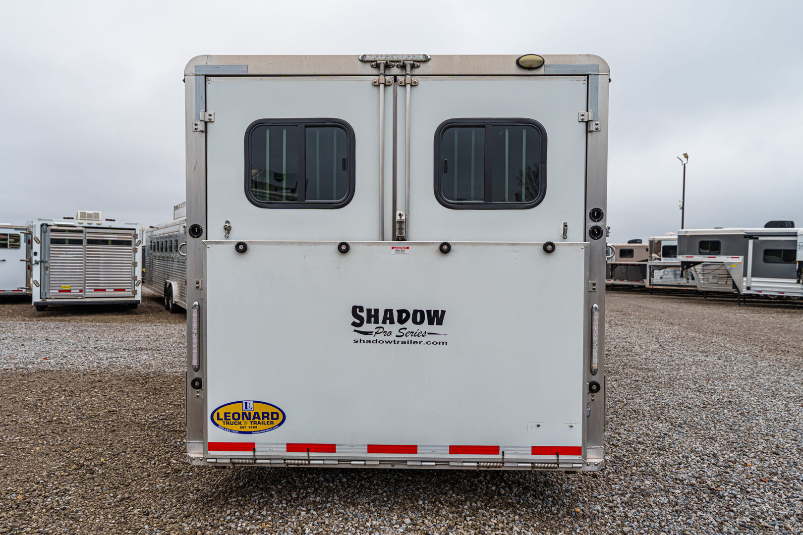 View Inventory: https://leonardtrailers.com/inventory/45157 Stock# 45157 Used 2022 SHADOW 6 Horse GN Trailer   General Information Coupler Size: 2 5/16” Adjustable: Yes Roof: Aluminum Primary Color: White Length: 35’ Width: 8’ Height: 7’ 6” Horse Area Type: Head to Head Options: Mats Pads  Vents  Lights  Hayrack  Rubber Lining: Complete Door / Gate Double Rear Doors Ramp w/ Tail Doors Dressing Room Size: 6’ Type: Straight Options: Lined/Insulated Carpet  Saddle Rack Location  Specifications GVW: 16,000 lbs Axle Size: 8,000 lbs each Tire Size: 16” # of Brakes: 4 W/B Brakes: Electric Ride Type: Rubber Ride Jacks: Dual Hydraulic We offer outstanding financing options, accept trades, and can arrange nationwide NO HASSLE delivery! Inquire today for more information! (888) 333-6613 **We believe these specifications to be accurate. Any discrepancies are unintentional. Please verify information with a sales associate prior to purchase.** Stock Number:45157